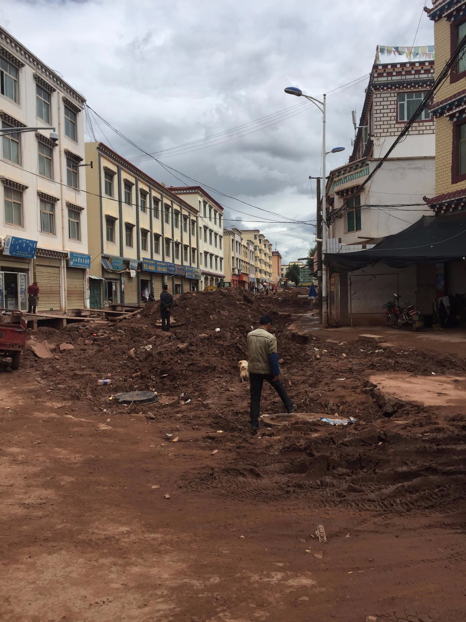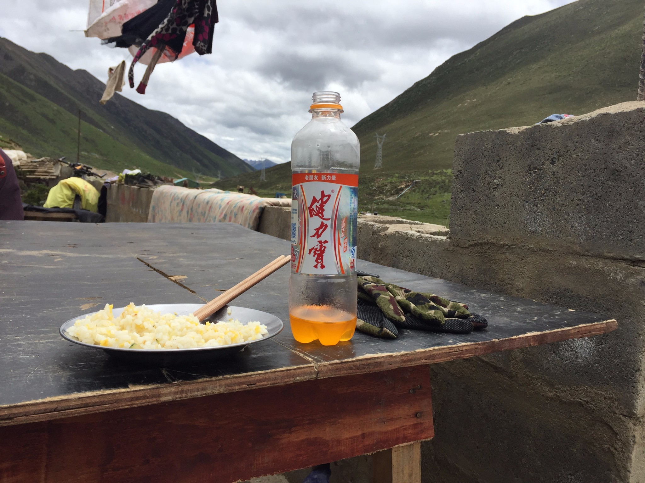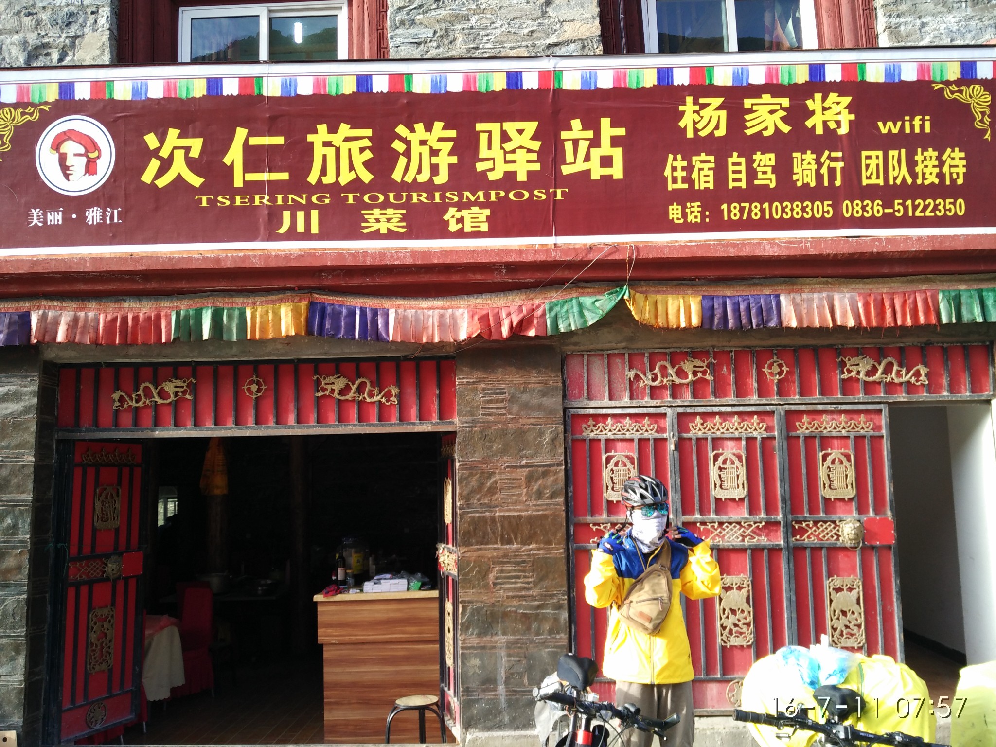 晚上到村,已经是七八点的事了~ 这是在一家叫做骑友之家的旅店门口,我们在这搭的帐篷D5 冲江河电站村-俄迪村-冲江河山口-小中甸- 晴-局部小雨-大晴昨晚在村骑友之家门口搭帐,老板娘人很好,推荐一个,免费让我们洗了热水澡,早上起来给我们煮的粥、饼、鸡蛋外加打包外带一共15,算是豪华套餐了。
