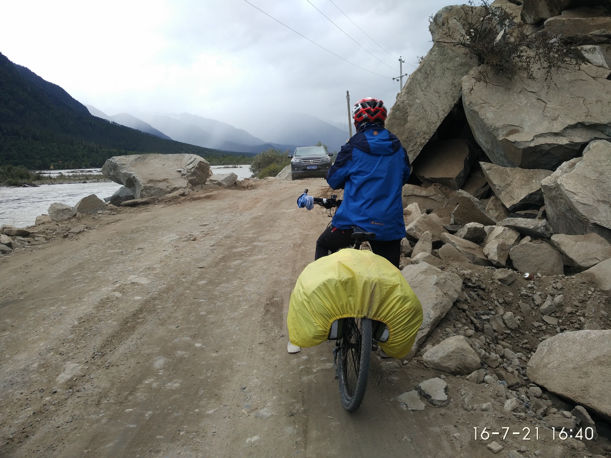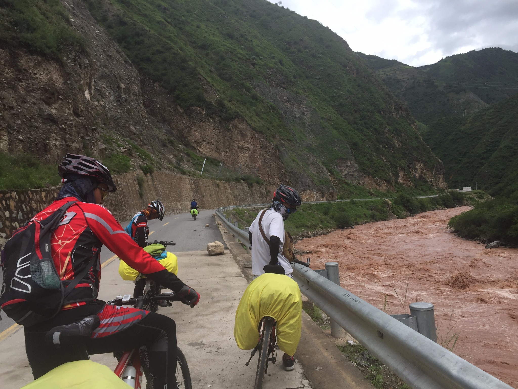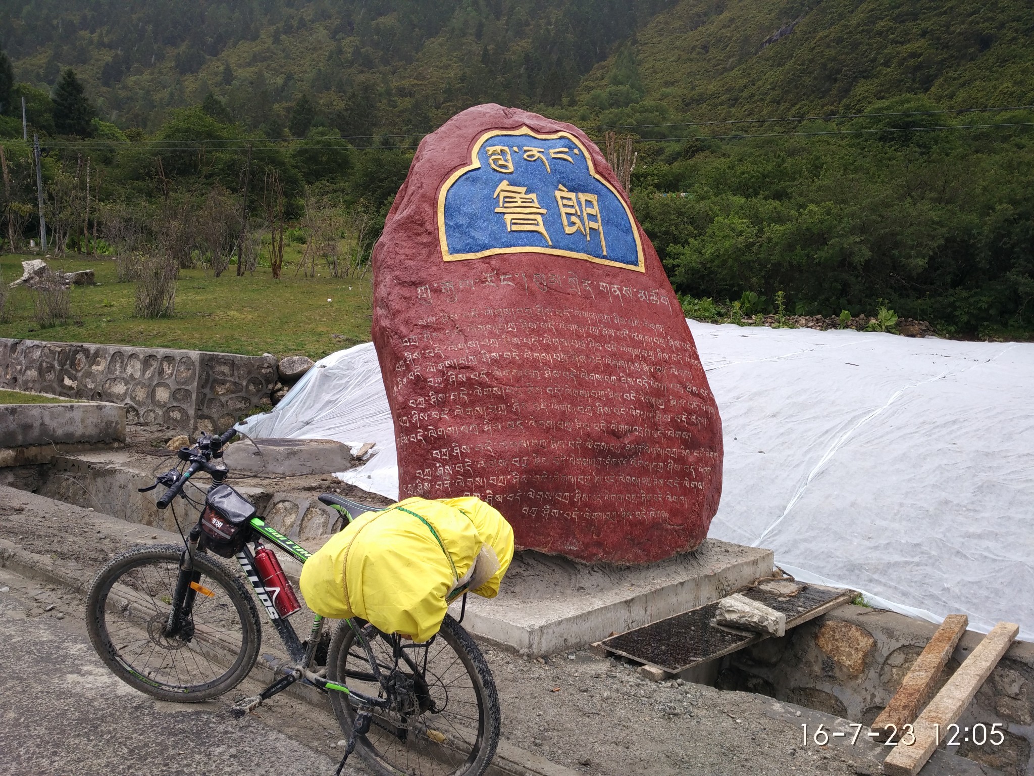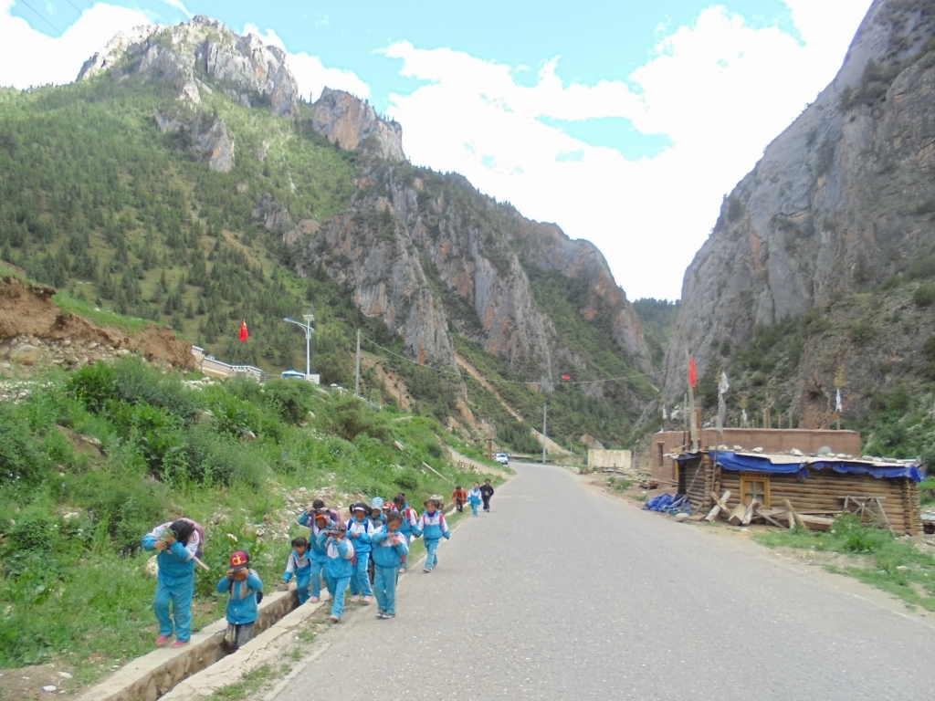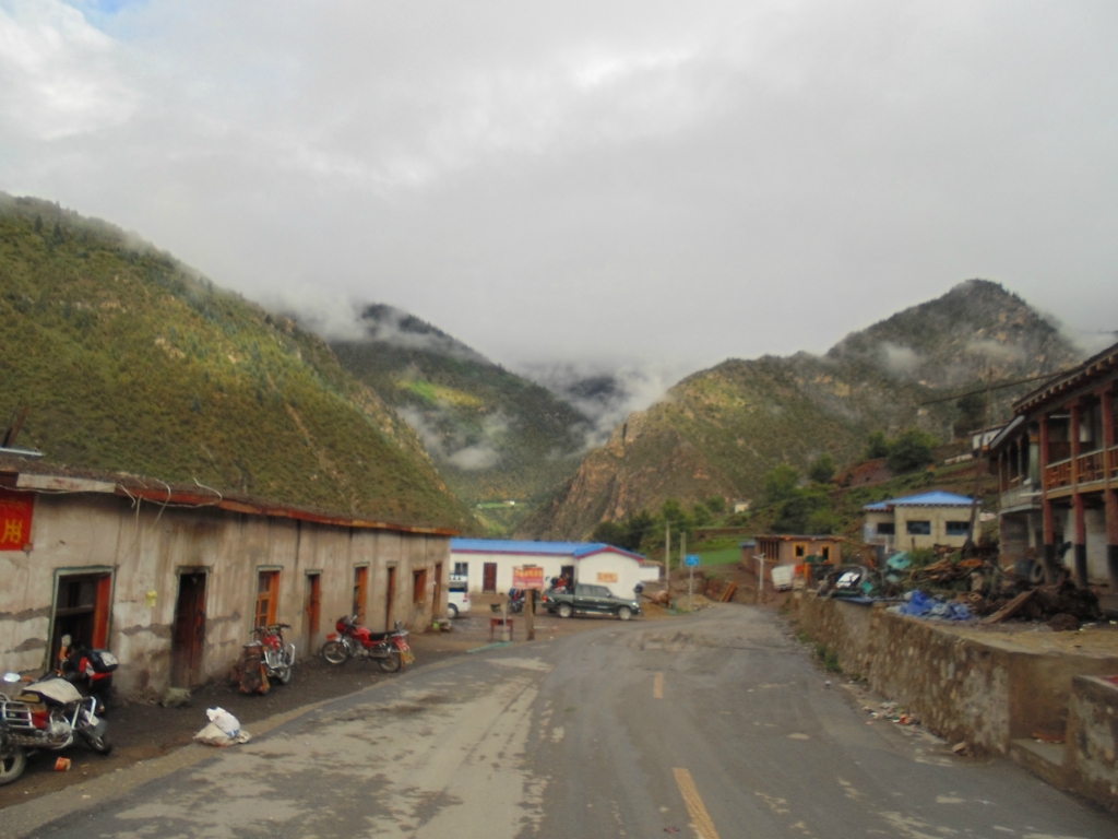 进 看见一群刚放下的小盆友 哈哈 好害羞 这是的神山--珠然神山---------------------------------------------------------------------------------------------------------D14 --田妥镇-阿四村- 109km 2013.6.26 小雨-中雨今天是个坏天气 一路都在下雨 按照波尔所说的 应该是一个不错的休闲骑行。不过阴天看不到湖光风色了 昨天在东达山装逼感冒头疼 及时嗑了几粒氨加黄和利巴韦林 第二天安然无恙 徒步的哥们今天拼车去然乌 雨还在下 在犹豫要不要出发,最后在床上看完神十圆满完成任务激动的决定集体出发。收拾行李 县吃了早餐备了干粮,冒雨出发~