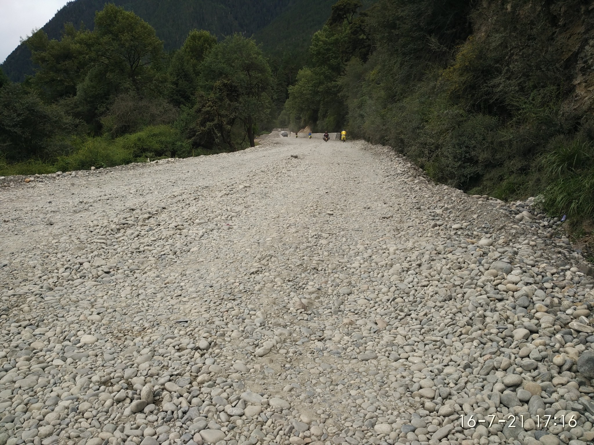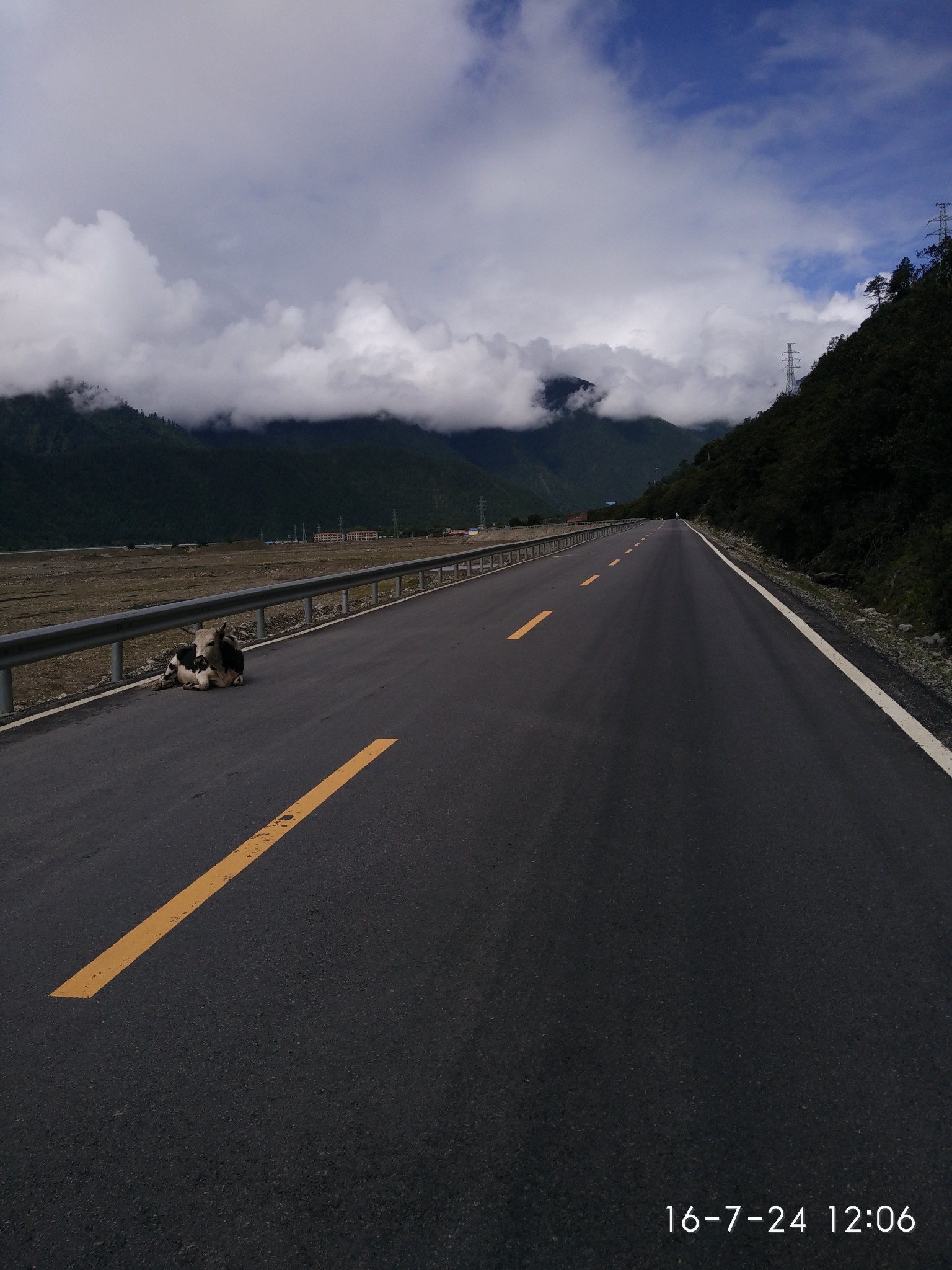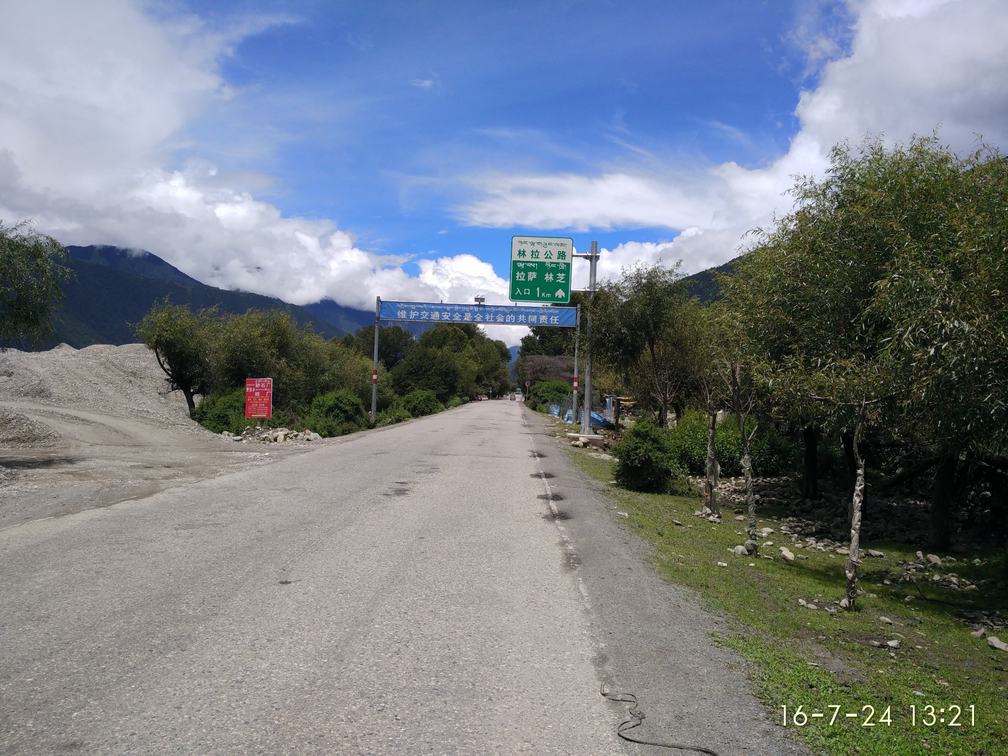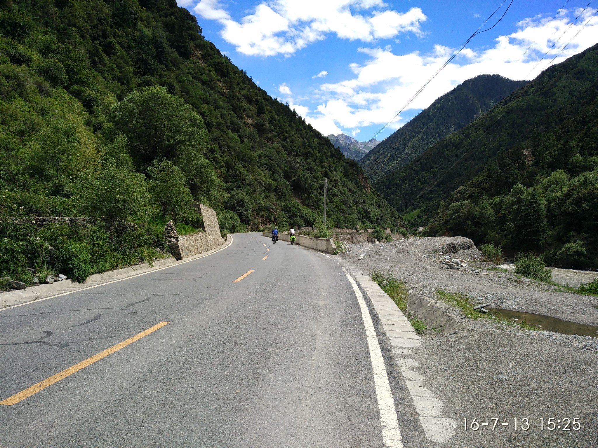 -----------------------------------------------------------------------------------------------------D18 --古乡--102塌方区--通麦 2013.6.30 92km 小雨-晴--小雨与峰仔一起在昨天的小吃吃早餐,油条2块稀饭1元小笼包6元8个都很好吃,推荐,老板娘人不错,人。等到10:30邮局准时开门,排队盖章立马走人,今天行程92km,基本都是下坡路,后段2kmS形上坡4km烂泥路外加N个起伏路。这一路的风景很美,也很险峻,从到故乡,会经过一个蝴蝶缤纷的地带,哪里有超多的蝴蝶,成千上万的飞舞~过4044处,有一个深水涉水区,一群骑友的互相帮助下黯然通过,通过后不久一位哥们摔车压到腹股沟处无法前行。这天也是老妈生日,一路上在想着如何精心给老妈一个生日惊喜,最终给老妈的彩信也没能收到,真是遗憾,还是要补上一句:老妈生日快乐!! 往后就到通麦了,通麦实行交通管制,4个轮子的通通排队等候,也不知道前面有出啥事了,希望一切平安!!今天到住处,洗澡靠墙跟来两小妹妹聊天被马蜂蛰了一下,疼死爷了,然后晚上头回吃到满盘辣椒的鱼香肉丝,我天!!还30/盘... ----记 通麦 通麦乡村饭店