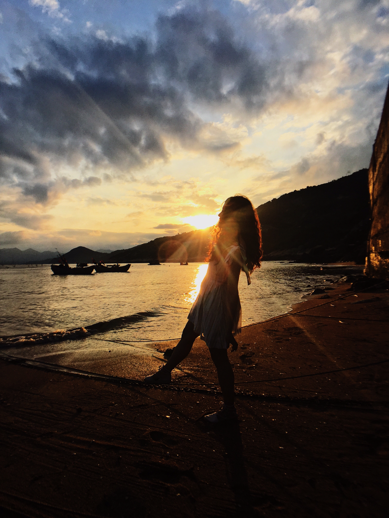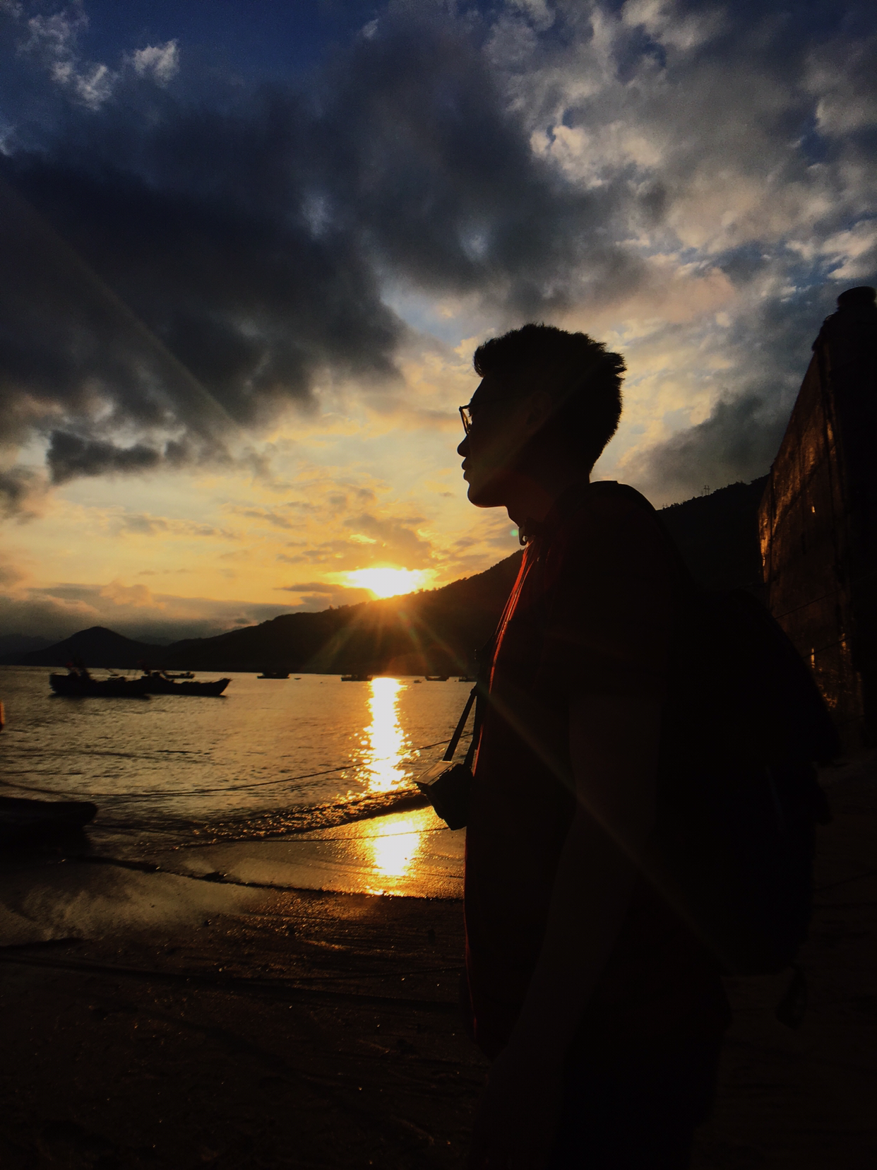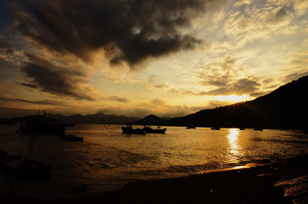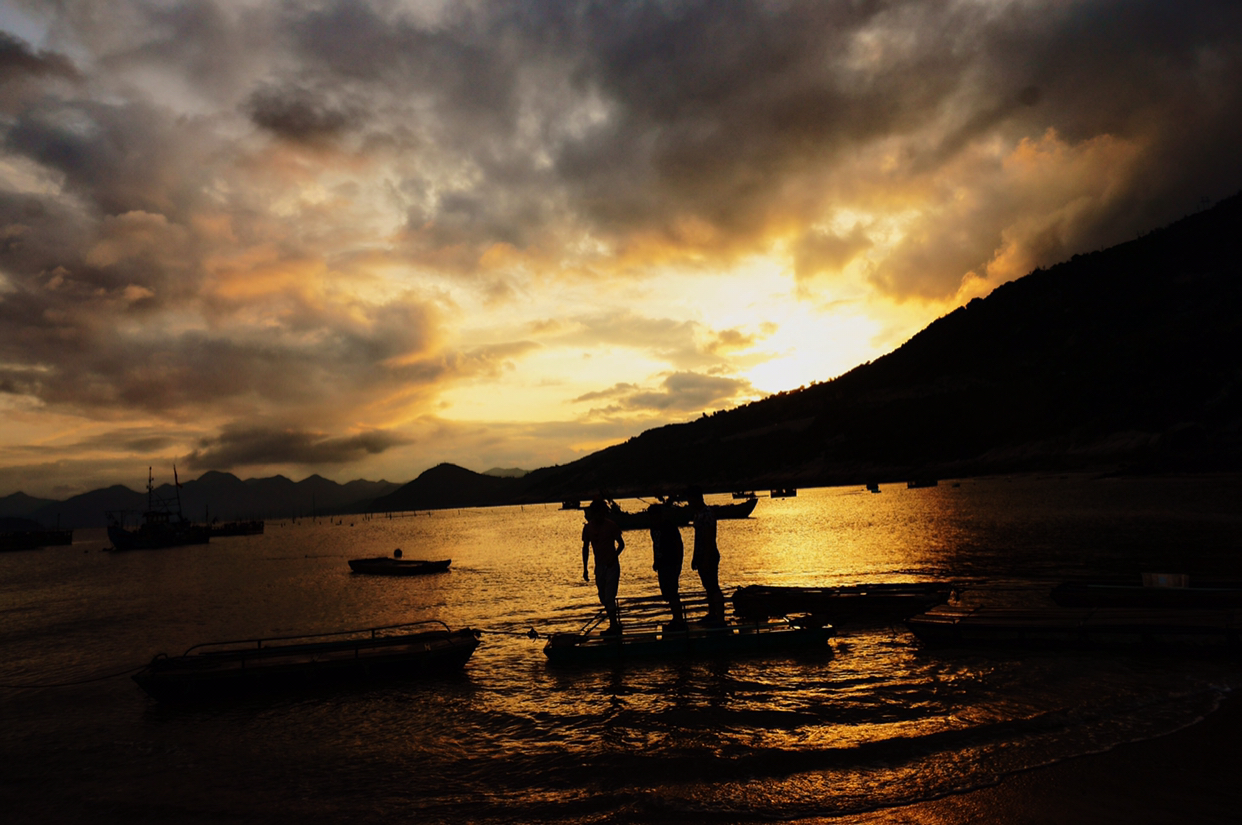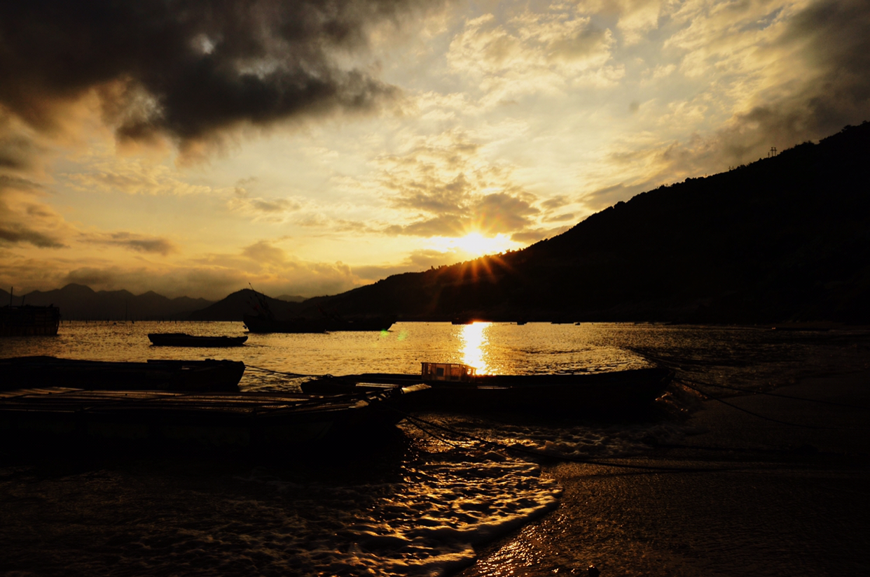太阳落山啦,在最后的金光余晖中上船!随便一拍就很好看