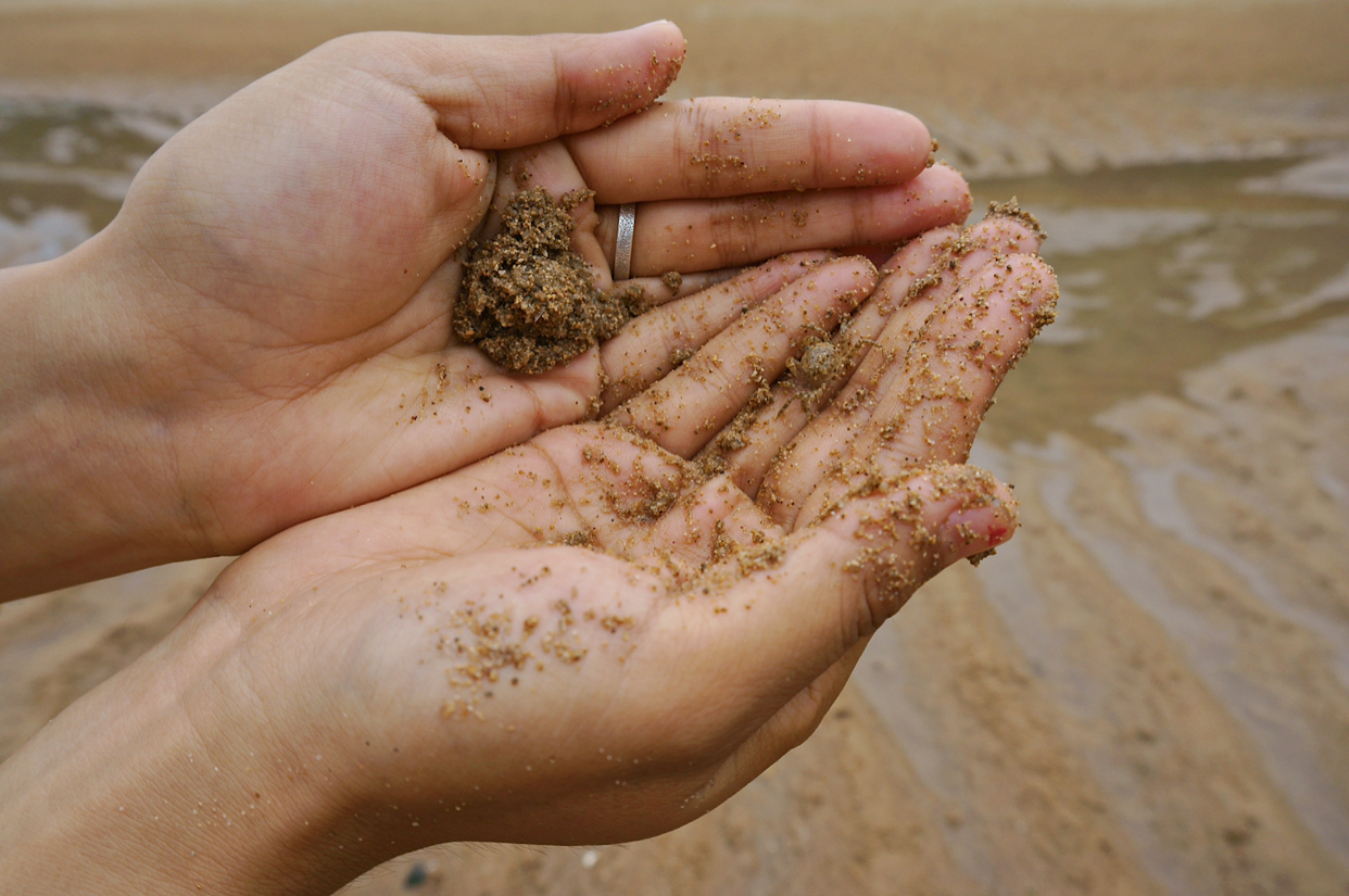 还有小螃蟹留下的小圆球,满地都是,超可爱的!
