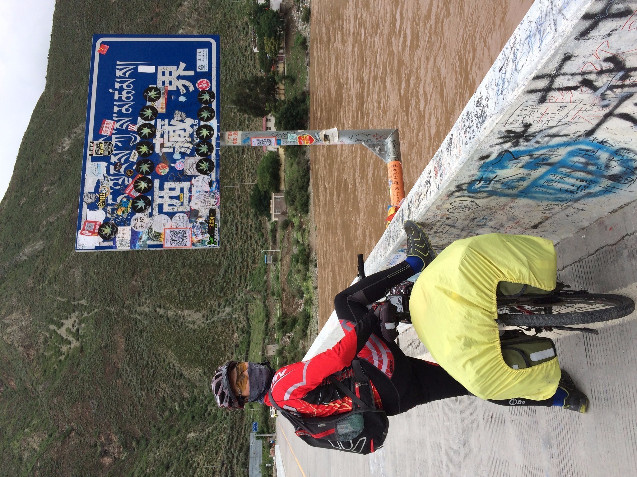 一路下坡 就到这个观景台了第一天的结尾~到136界碑处,已经晚9点,全身虚汗已经流过好几次,处于虚脱边缘,全身都在无意识的发抖,六个人一起在一家叫缘记得小饭店吃了一顿超值晚餐,五菜一汤人均10元行程中的第一天在兴奋与奔溃中算是平安度过,明天到的44km 是本行程最轻松的骑行了~Day 3 - 44km 2013.6.15 晴