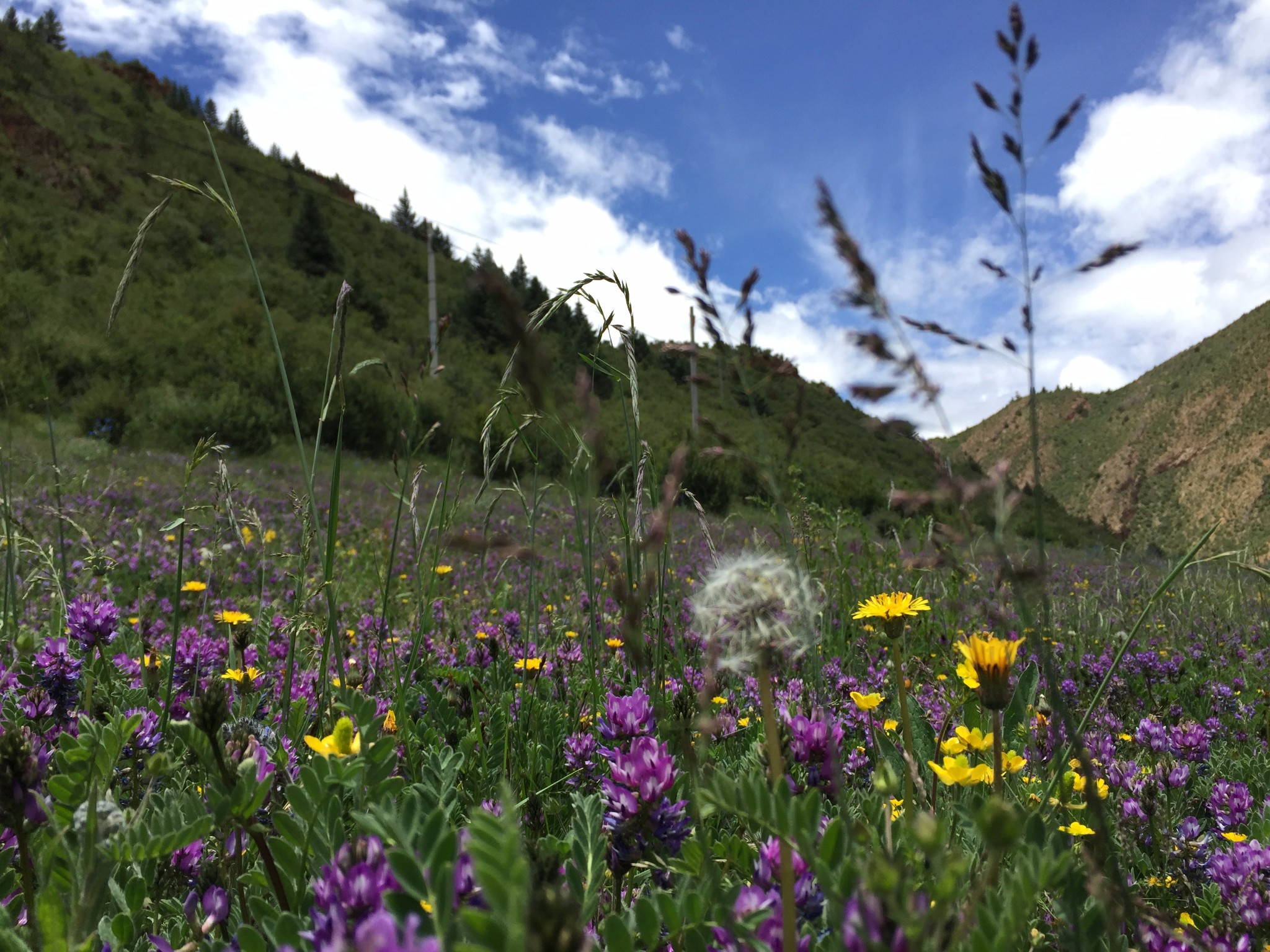 不过听说貌似草原正赶上牛羊发病季节 很多牦牛都生病死掉了 所以草场藏人是不允许别人下去的这是停车休息补给的时候拍的 在小中甸 随手一处都是鲜花盛开的所在 很是喜欢