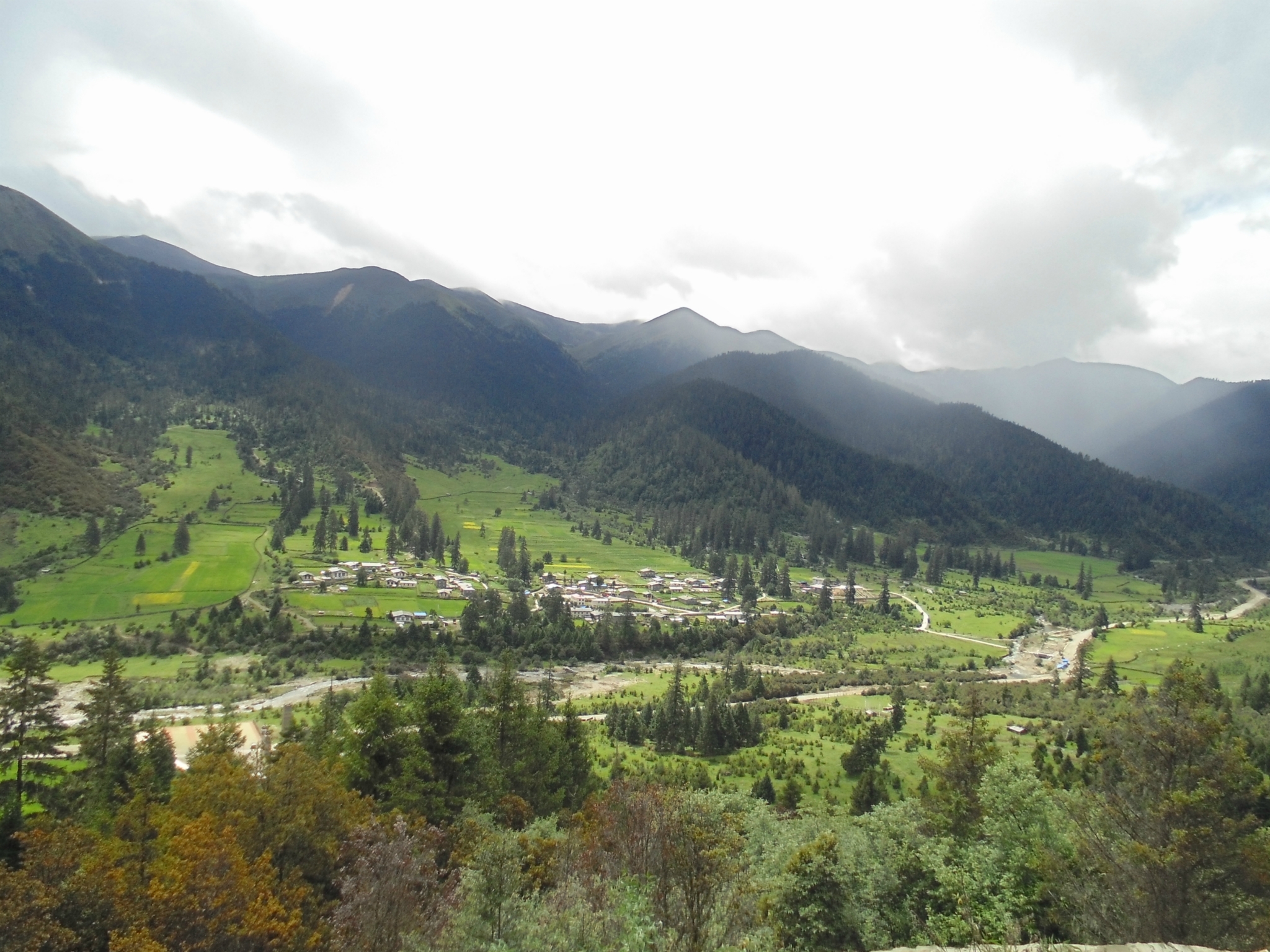 ----------------------------------------------------------------------------------------------------D17 然乌--中坝--玉普乡--松定-- 2013.6.29 132km 阴 晴今天形成130km,风景确实不错,如果能晴空万里那就更好,中间有段路特逆风,边骑边骂波尔坑爹,这次出行一路除了mp3,其他都出问题了,手表表带断了、手机键盘坏了、相机摔坏了、单车变速器脚撑都换过,悲剧一大堆.. 不过都在能接受的范围内,出来就是这样,有问题总有办法,且办法总多过困难~今天要经过几个涉水区,在第一处左脚不行中招,套着湿鞋走了一天... 其中过那娘村我跟峰仔仔那边玩了很久,雪山、豌豆田、青稞、还有臧家房屋,进可以见到一种树,上面满是种子,起风时漫山遍野的飘开,很梦幻的感觉,晚6点准时到,无奈双休没赶上盖章,在问了一家最便宜的旅馆住下,6铺睡了4兄弟,除了热水啥都不说了。
