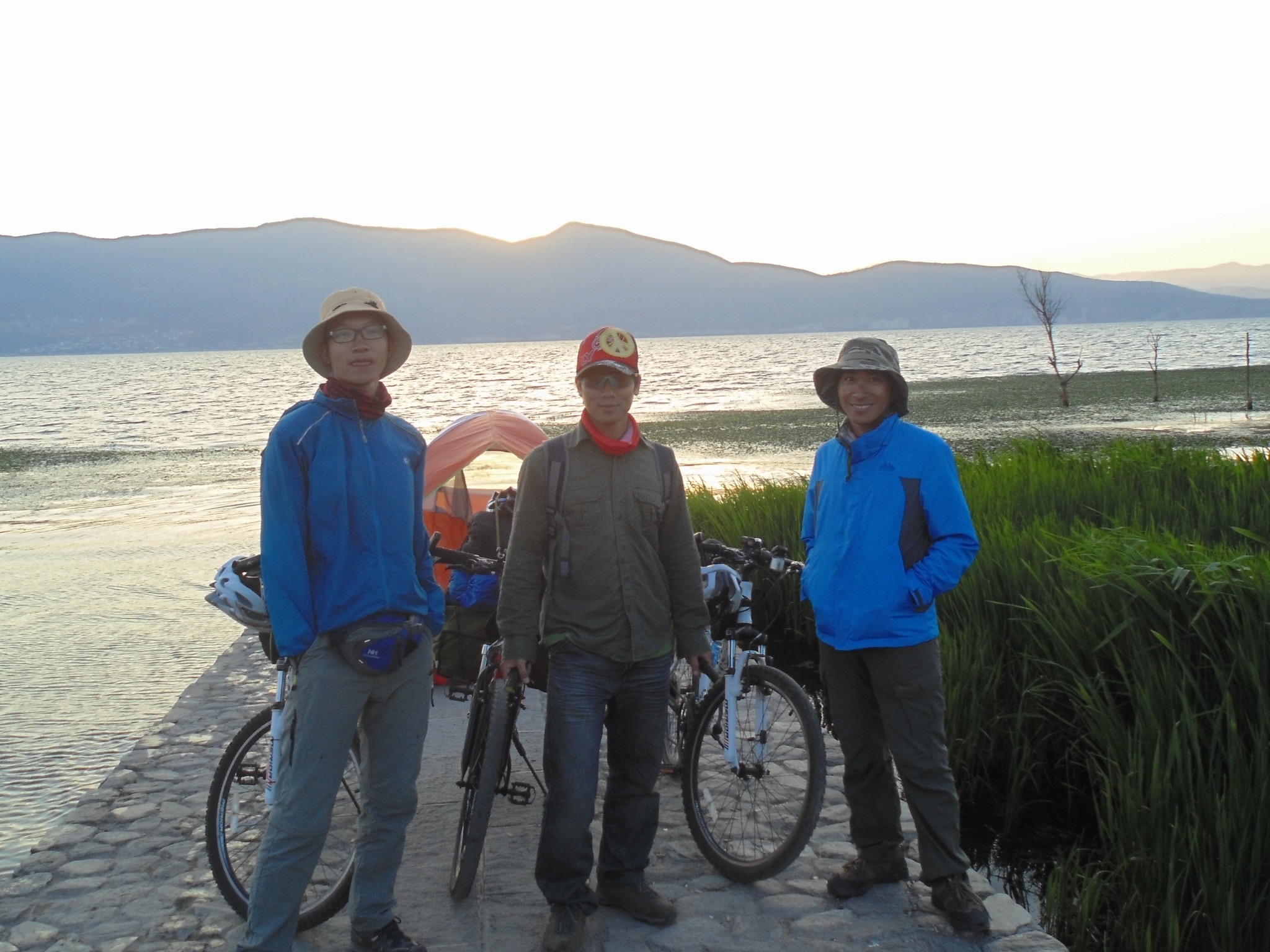 最后决定 直接在码头边上搭帐了 跟赵王两小伙子一起搭的蓬 洱海晚上的风很大 芦苇荡整夜的响着