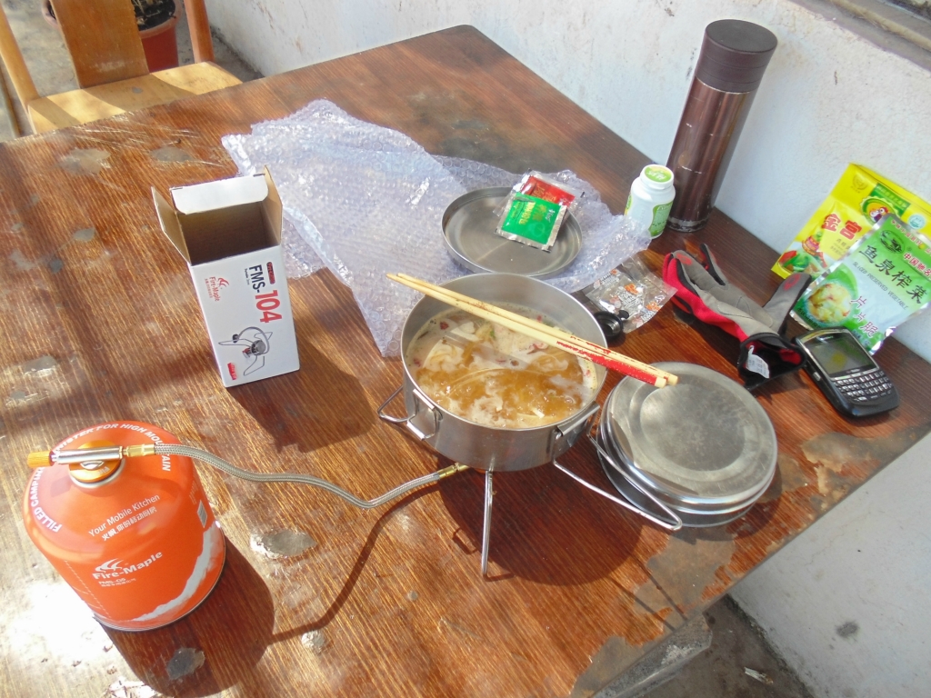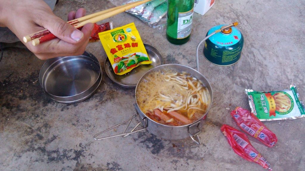 在大丽路服务区角落燃炉煮面,在这里得道了路上的第一次饮水补给。