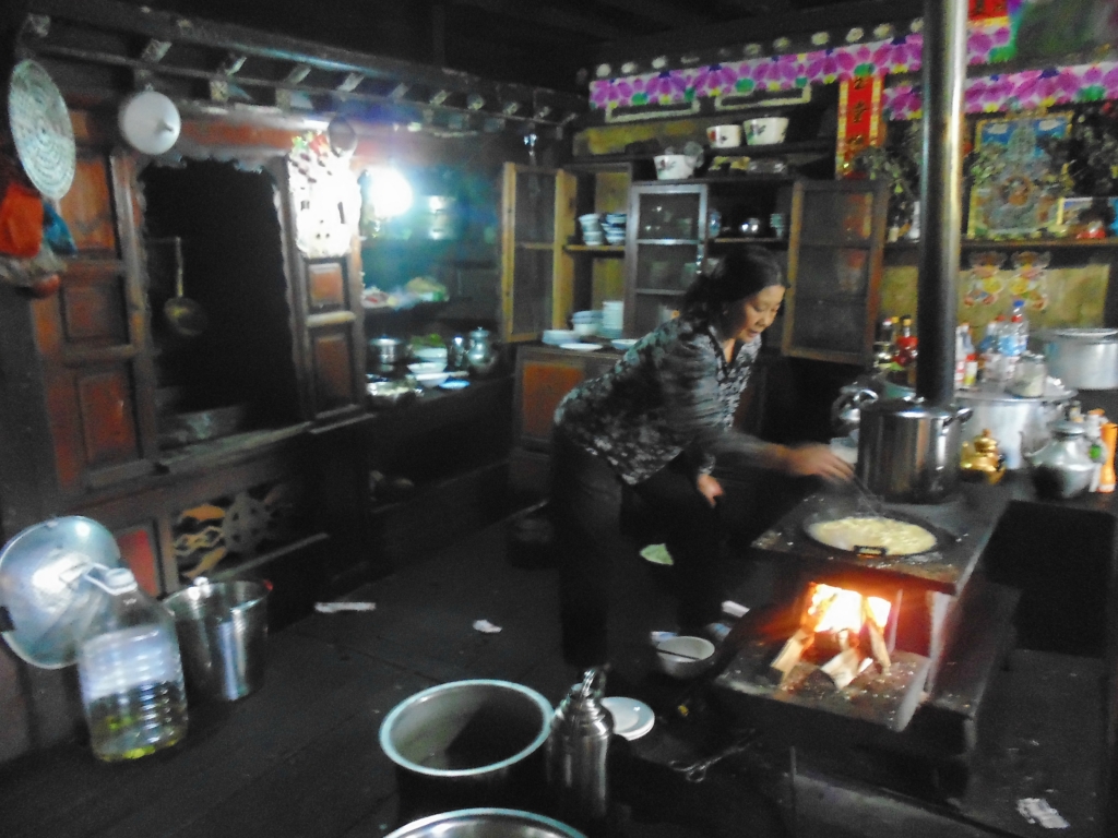 磨磨蹭蹭 最后倒成为最后进滇藏客栈的了 哈哈 格桑妈妈在给我们煮早餐