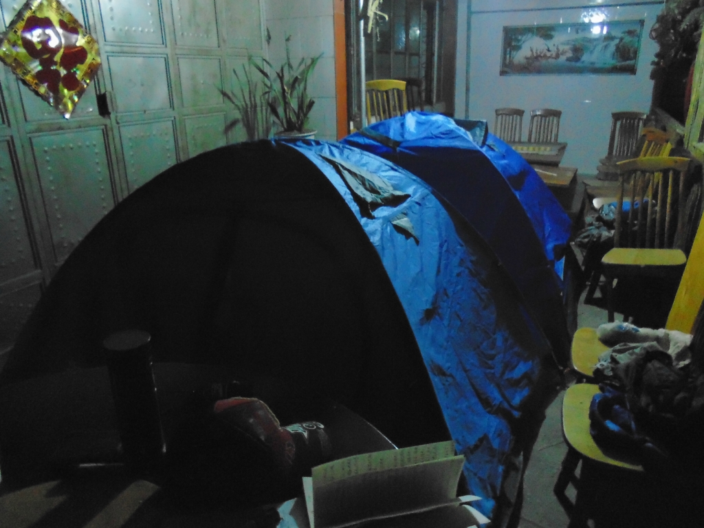在奔子栏自己泡面解决温饱 在大热天来一瓶冰啤 真是透心爽啊!酒足饭饱后大伙直接席地而睡了这是二小 条件相当可以啊