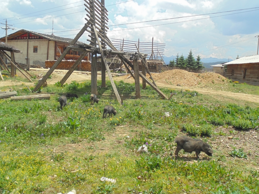 第二天早起赶路 在集市吃完早餐见到大妈独特的卖鸡方式2013.12.17D6 -尼-奔子栏-东竹林垭口-东竹林村-书松 104km 2013.6.18 晴今天一路的行程很精彩,还是雨季前特有的大晴天,先后经过的风景区也不少:的海、纳帕海草原、连续的长上坡、过尼后连续40km梦幻长下坡、到奔子栏后半段的长上坡,基本这一天就是上上下下蹦跶着前进了。