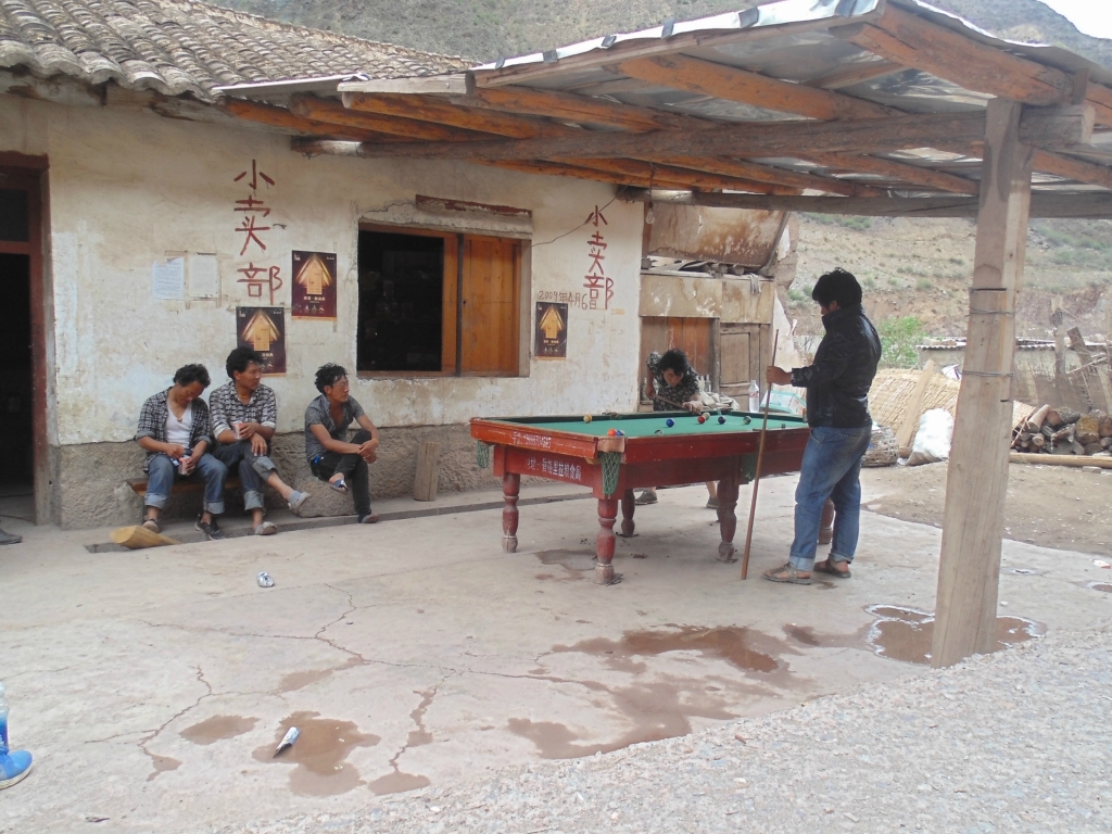 过就要进入境内了 看见一群藏小伙在玩桌球