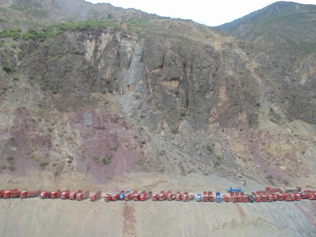 对岸停着一排大卡 真是壮观都是这样过去的