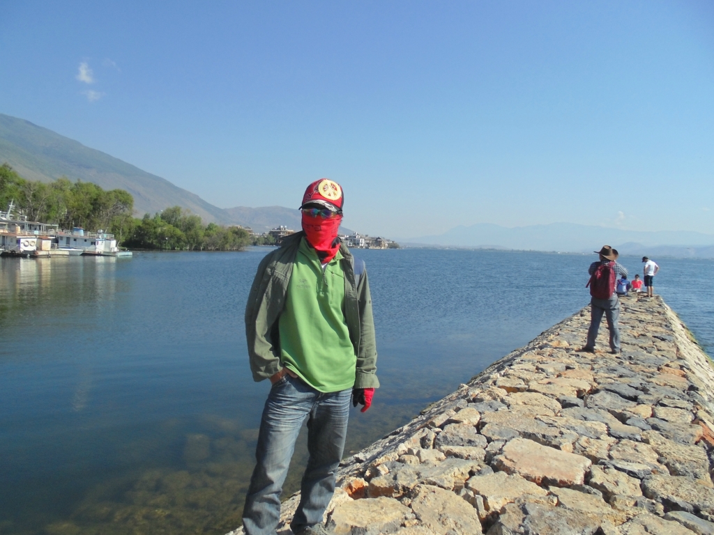 其实到的一段路,前面一直到近50km界碑都可以不用走大丽线,你可以悠闲着挨着洱海边一路骑行就可以。那是真正的一路风光,一路阳光~感受着洱海的轻柔.