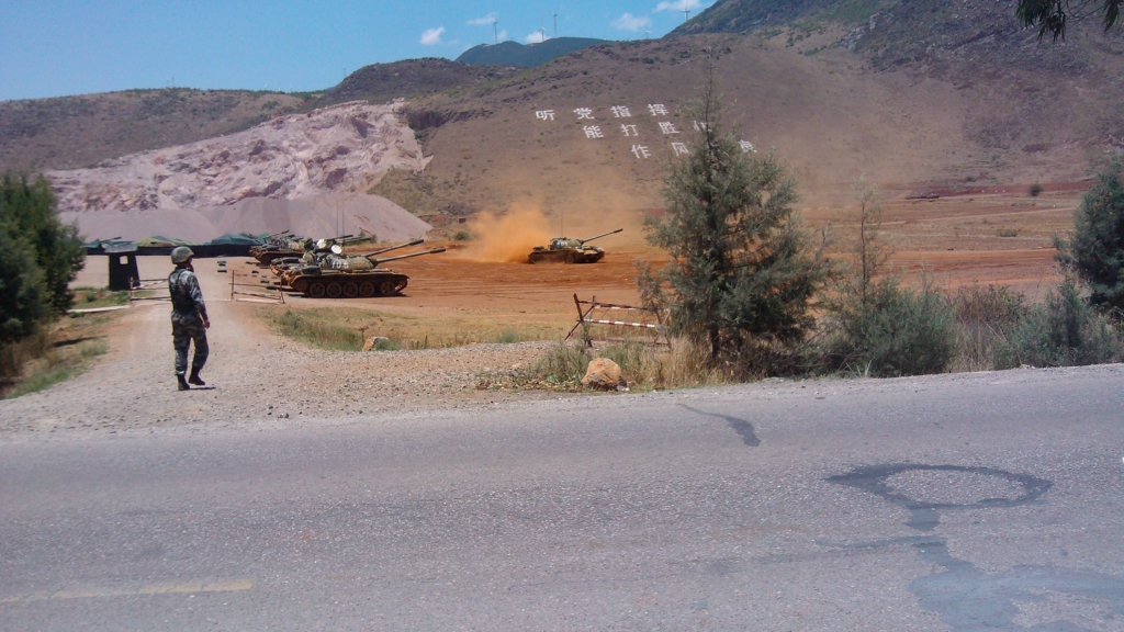 过67左右,一个军事基地,当时在专注打算拍上面的风车的,一个转弯,一排坦克大炮就出现在你眼前了,被激动了一下。