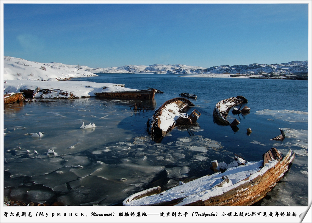 第十二站:北冰洋船舶的墓地——捷里别尔卡捷里别尔卡(Teribyorka)是科拉半岛北岸、北冰洋上的一个小定居点,属摩尔曼斯克州管辖。始建于17世纪上半叶,曾是季节性渔业基地,不久后发展成为重要的渔业中心。20世纪60年代,随着超大船只的到来,捷里别尔卡的捕鱼业逐渐衰退而留下许多废弃的船舶。由于没有对渔船到港和离港的登记场所,渔民们只好前往附近的地区首府——摩尔曼斯克。如今,小镇位于巴伦支海沿岸(北冰洋陆缘海之一),是海上失事船只最后的避难之所,岸边的船舶墓地成为捷里别尔卡的主要景点。