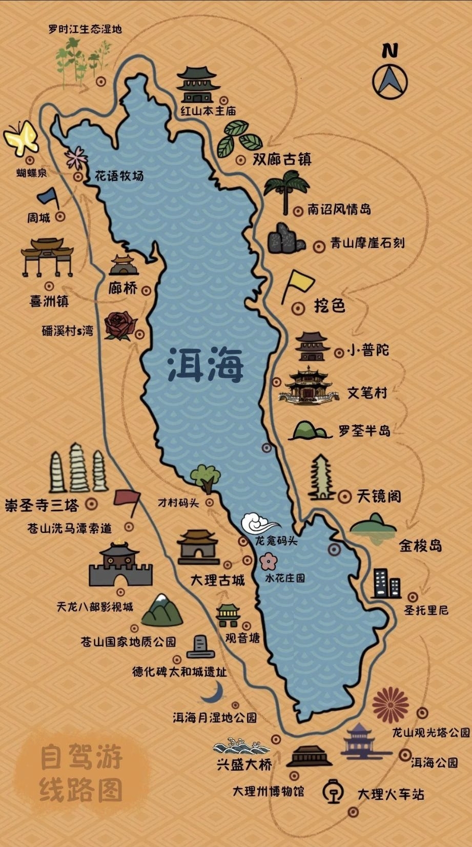 不爬苍山,懂得导航,有两天以上时间?根本就不用什么攻略,更不需要景点分布图,沿着大理洱海顺时针走,穿越绝大部分景点。给你所谓攻略的,大部分都不纯,多数有商业企图,谨慎思考。最经济实惠的租一辆两轮电动车,可以把大理各个景点走一遍。如果你是土豪,一辆四驱越野车,征服所有景点。租车?要记得一句话,店...显示全部