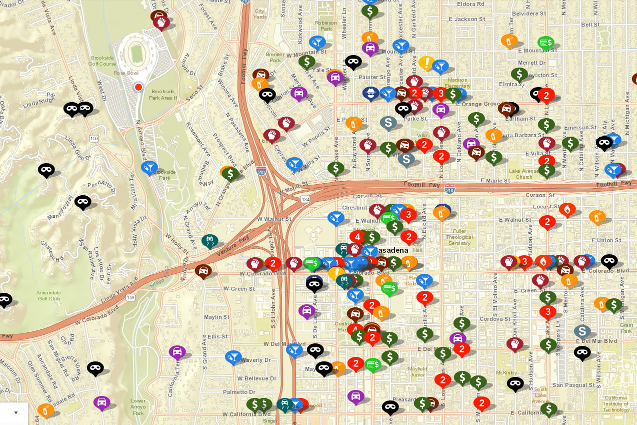 [题主采纳]题主你好。关于你的问题,我先上一张图此图是rose bowl周边近四周内的所有犯罪报警记录。途中左上角体育场(红点)就是你题中问到的rose bowl所在地,那你住的地方离rose bowl3公里我姑且猜测应该是位于Pasadena城的down town所在地,也就是途中高速公路划分开的右下角...显示全部