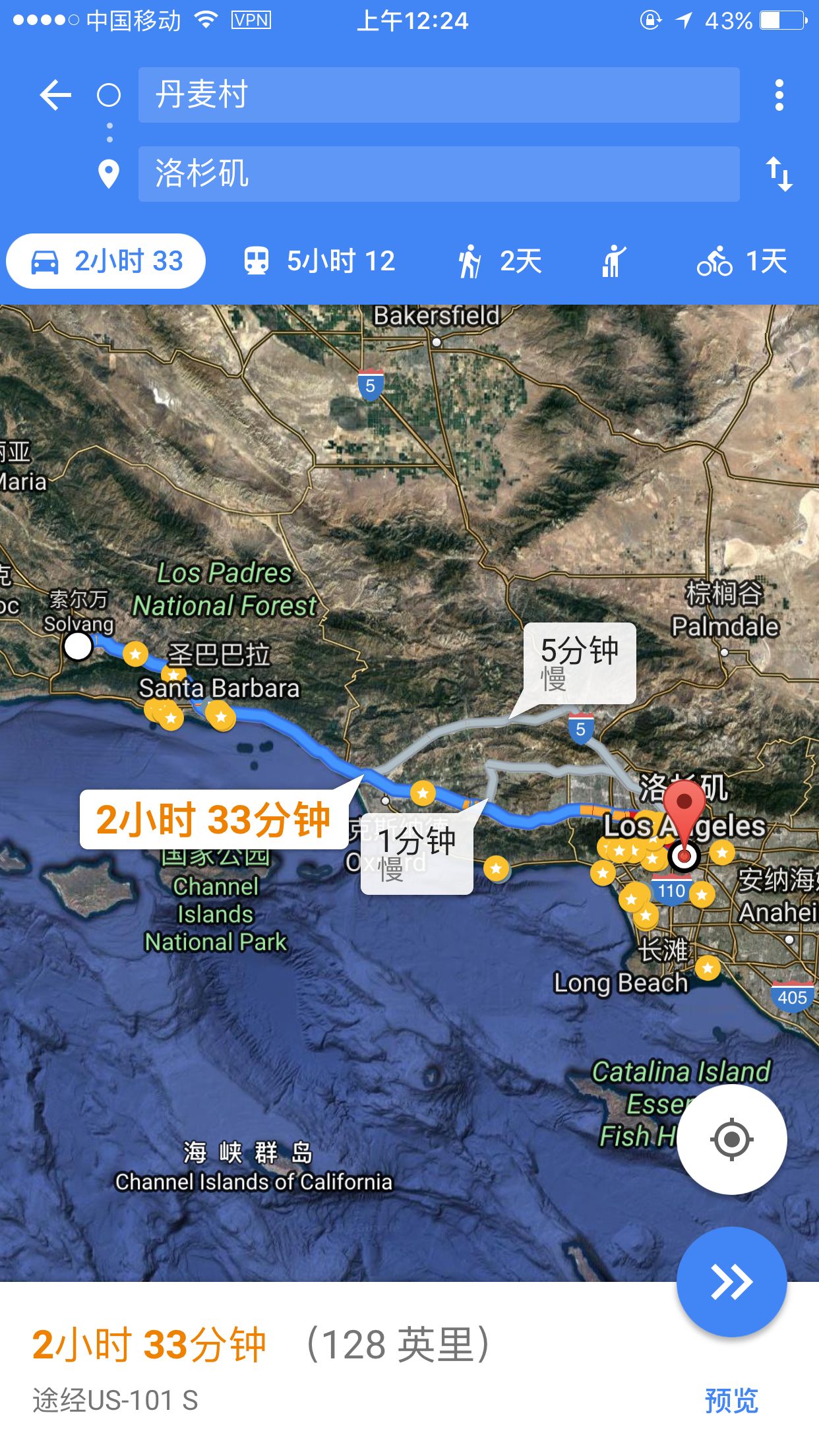 @Mico_W:你好,从圣巴巴拉中午出发的话,正常车速4小时能开到LA downtown吗?下午会不会大堵车?因为晚上看球,有点担心,第一次开,这段高速是否全程免费?是否有carpool道路,有没有要特别注意的地方?谢谢!