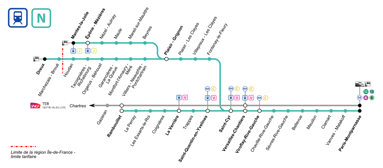 ,那么这里也要列车可以到达凡尔赛,Transilien N,它会经过