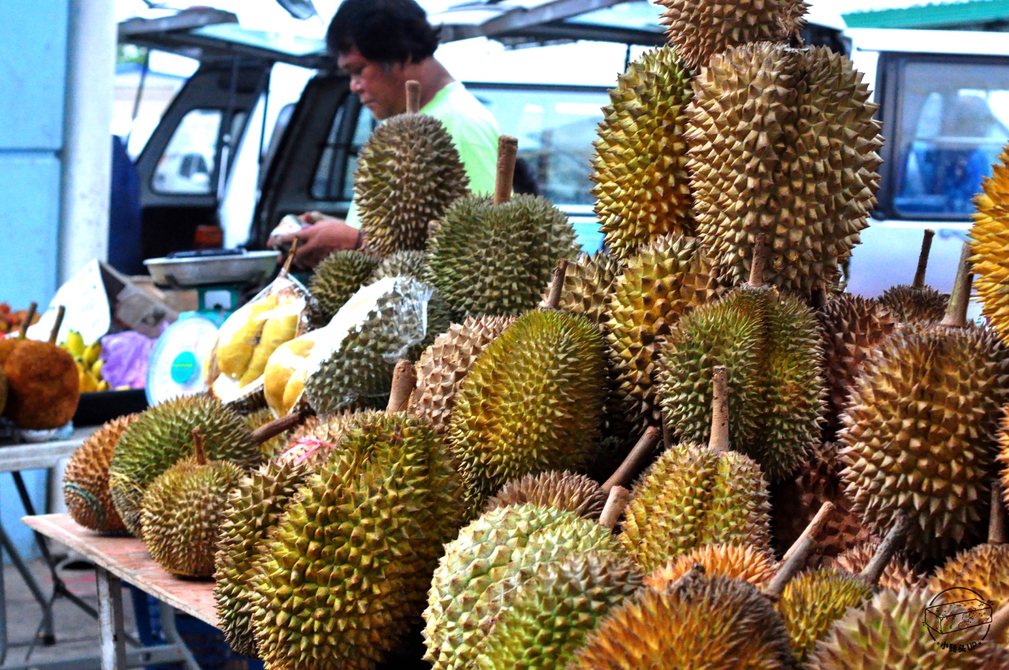 加雅街坐标:天桥底榴莲水果市场——