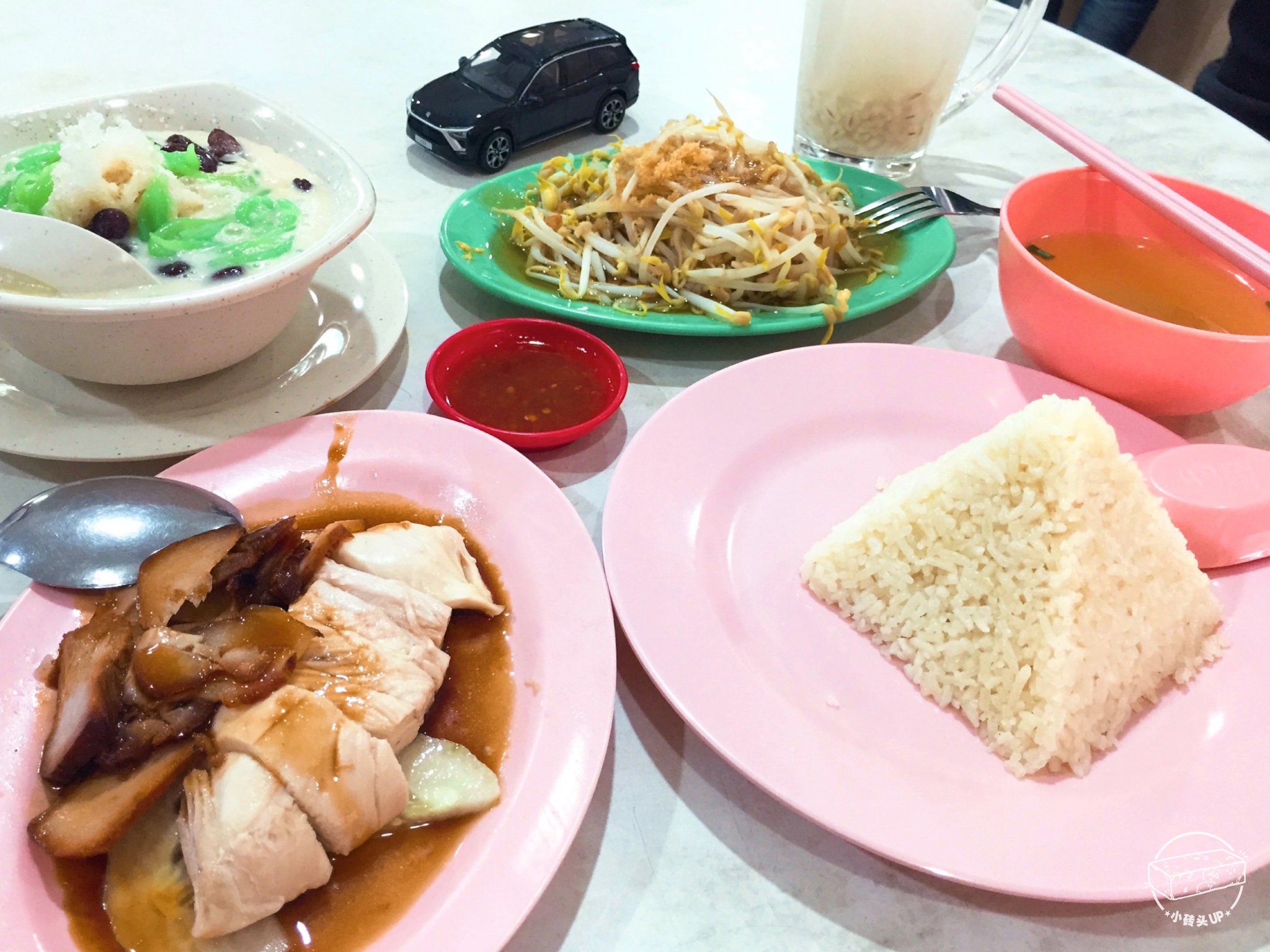 招牌推荐: 海南 鸡饭(小份)+咸鱼芽菜+薏米水,那个甜品红豆珍多冰个人不是非常热爱