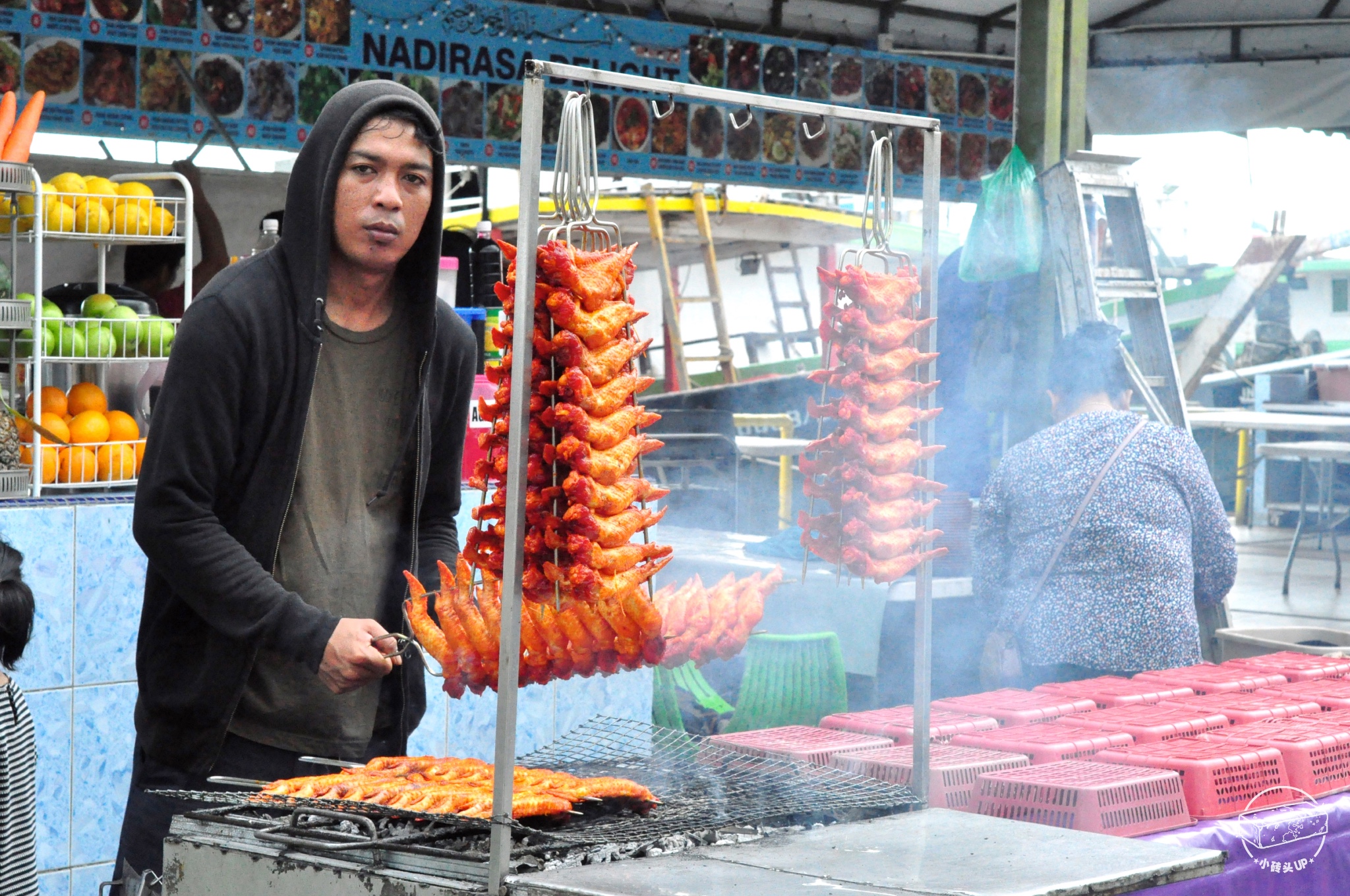 码头如果不想吃海鲜,吃烤鸡肉串, 奥尔良 口味不会出错。