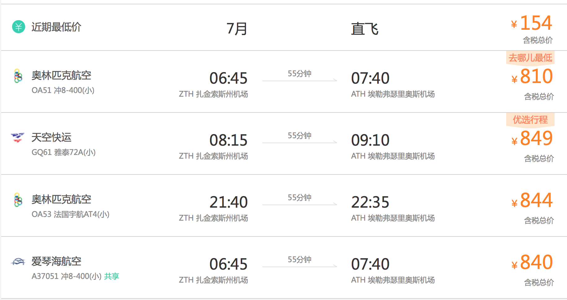 雅典到扎金索斯两种方式,【飞机】或【坐船】。坐船花费时间比较长,据说需要大巴转船再转大巴,比较周折。之所以是据说…因为我死活没查到怎么提前预定船票…>_<…几个船公司的官网从国内登陆还特别慢,如果想坐船可以直接到雅典的码头去看一下,现场买票,或提前一晚买第二天的票。飞机在旺季时每天...显示全部