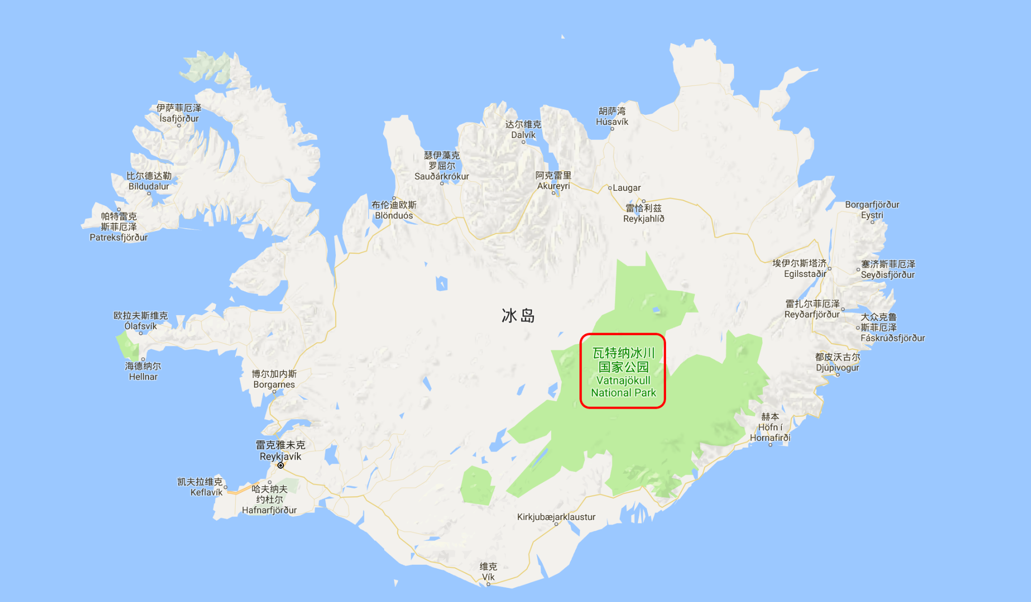 瓦特纳冰川国家公园,则位于
