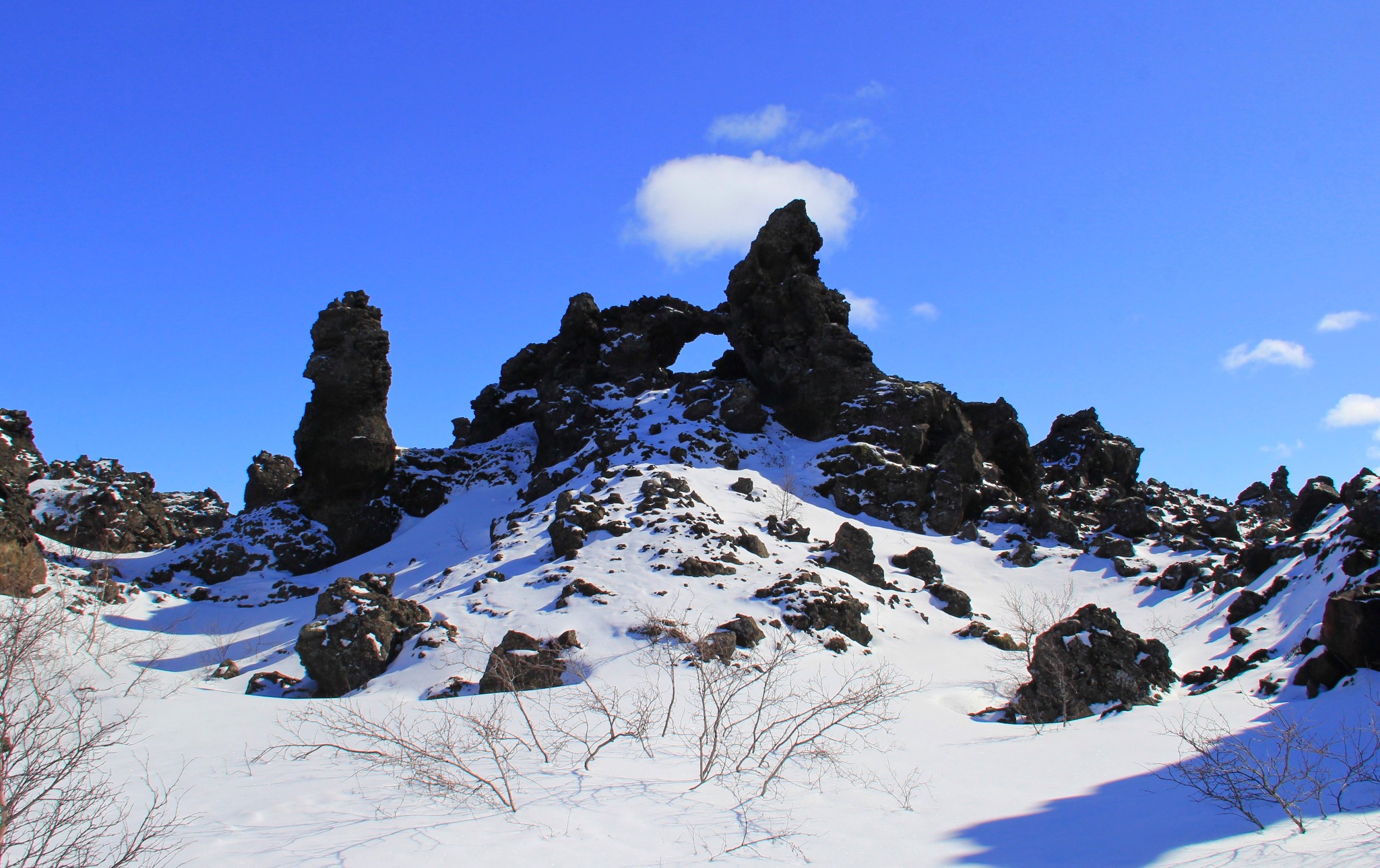 (Lake Mývatn) 附近,这里遍布了各种各样的嶙峋怪石,因此被称为“黑暗城堡”。