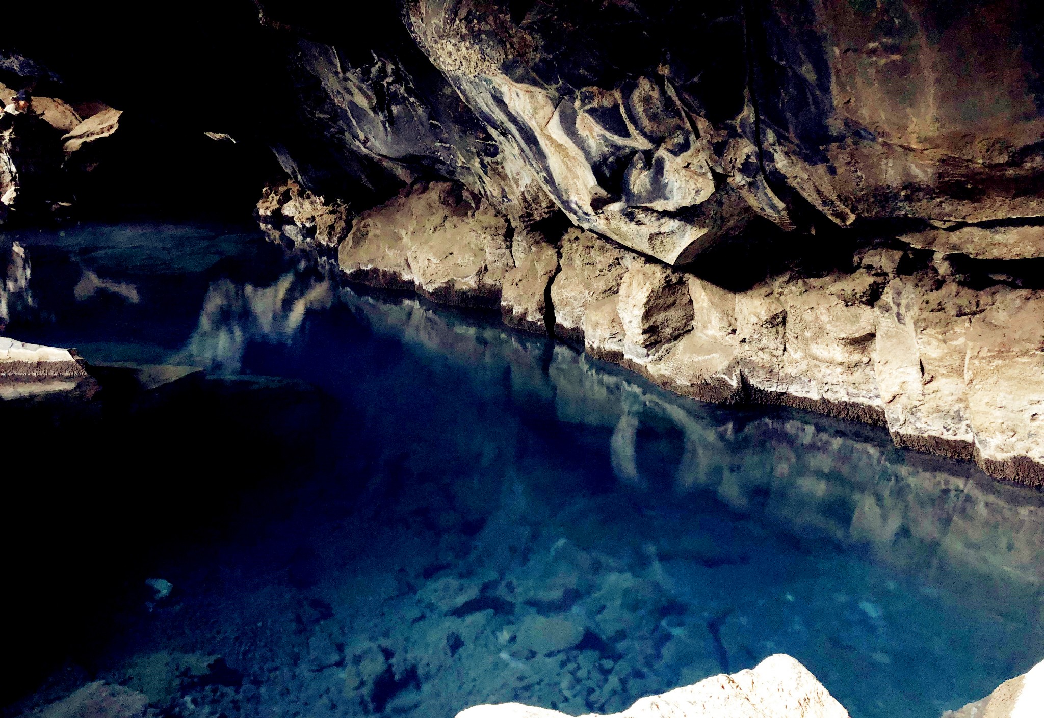 附近的一个小火山洞,里面有一汪蓝色的温泉,这里曾经是著名的温泉浴池,温度在38-40℃之间。后来因为地质活动,泉水温度飙升,当地已经不再允许游客在这里泡温泉了。