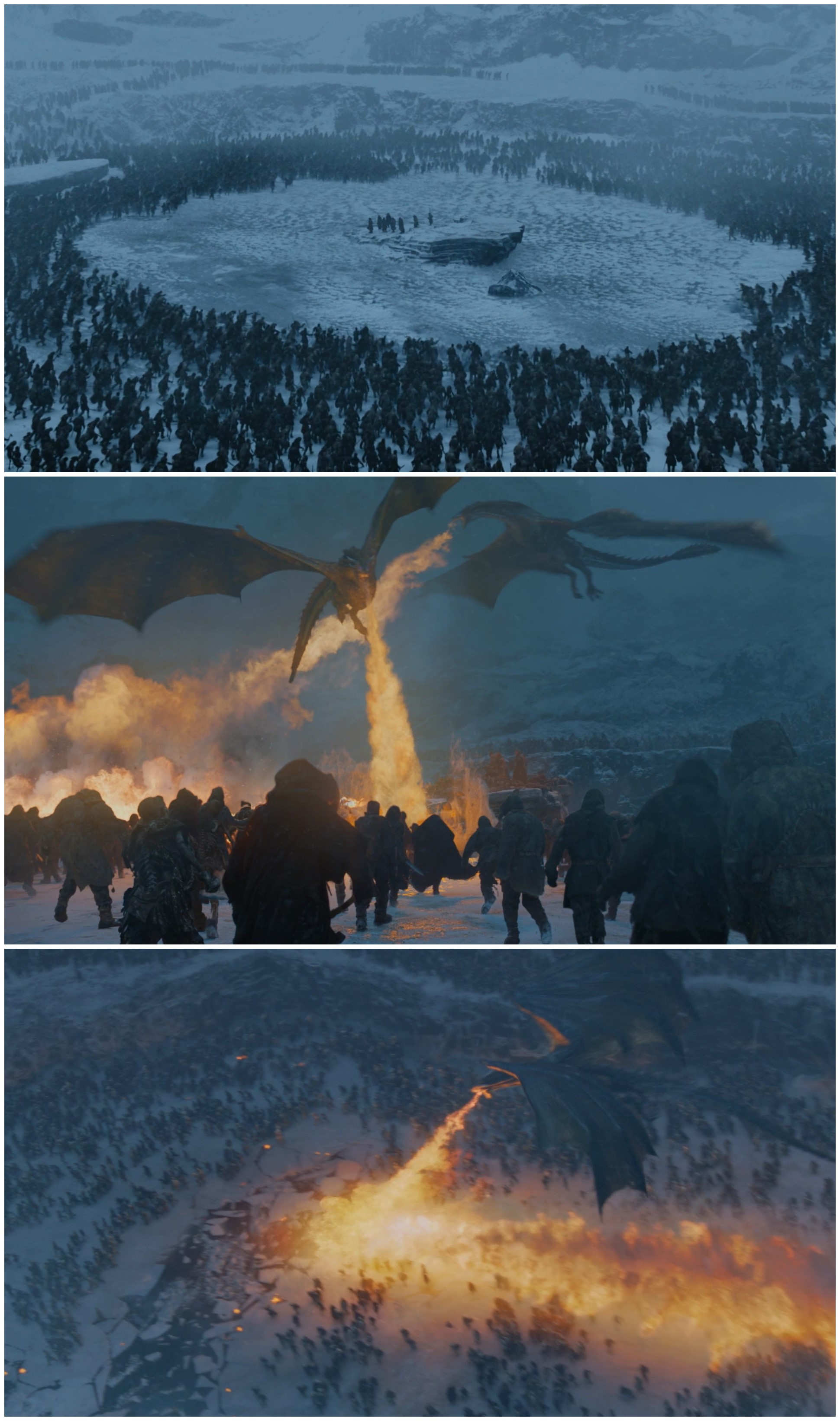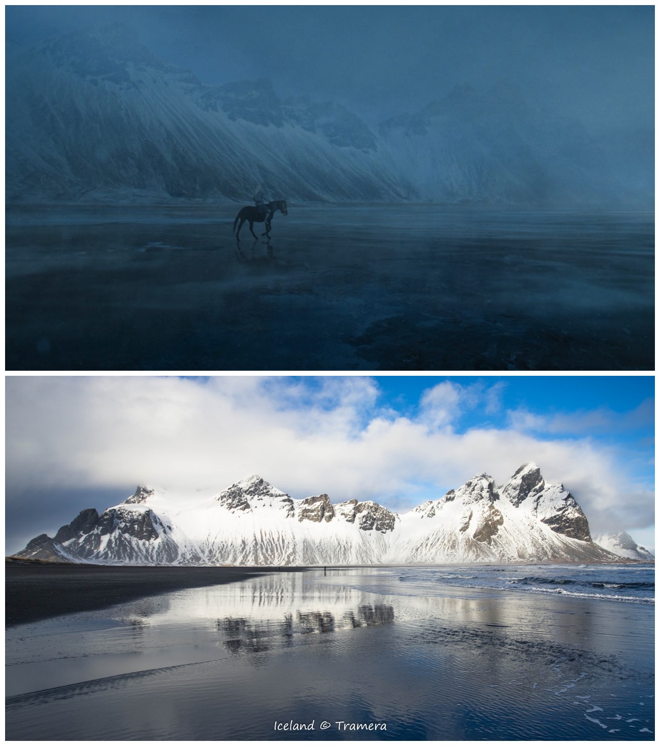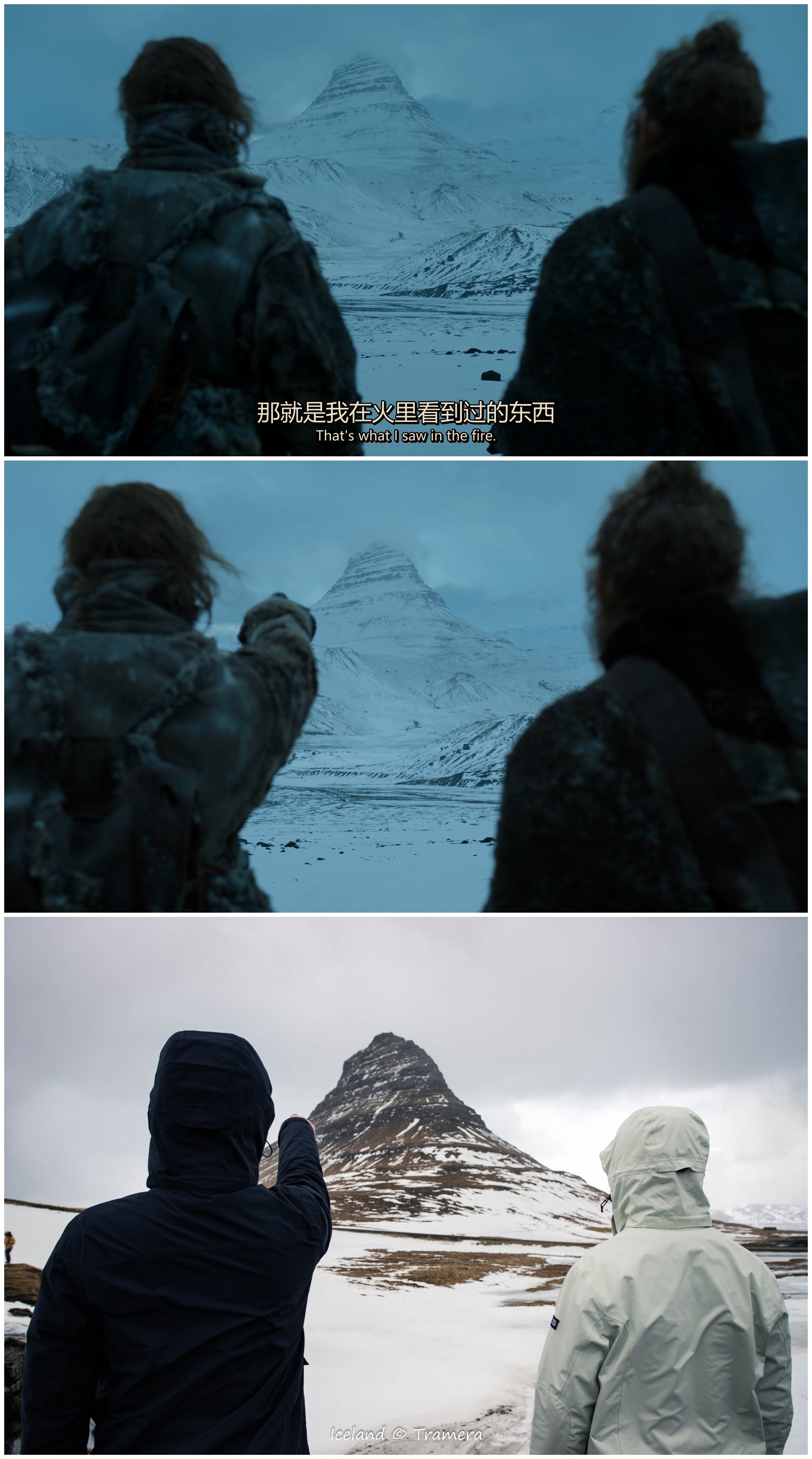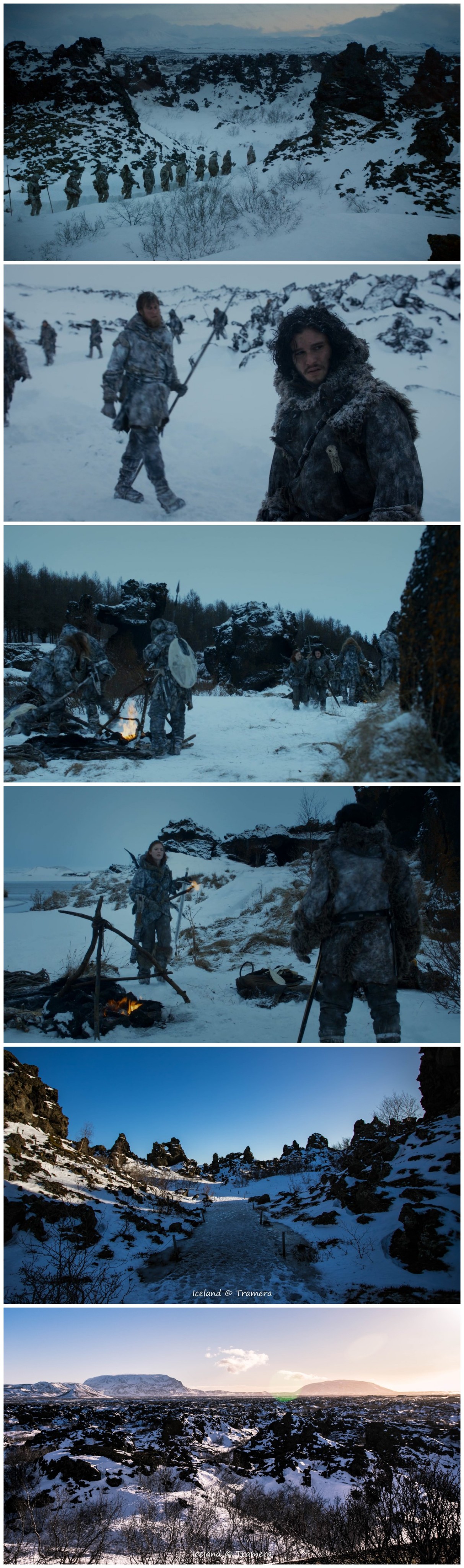 绝境长城(TheWall)及长城以北的大部分场景都是在瓦特纳冰川国家公园(Vatnajokull Glacier National Park)拍摄的。瓦特纳中的斯维纳山冰川,在剧中是一处坐落于七大王国极北地带、由冰雪筑成的巨大防御工事,这个伟大的“人造物”将王国与野人的土地分割开来,从最西端的霜雪之牙山脉,延伸至最东端的海豹湾。