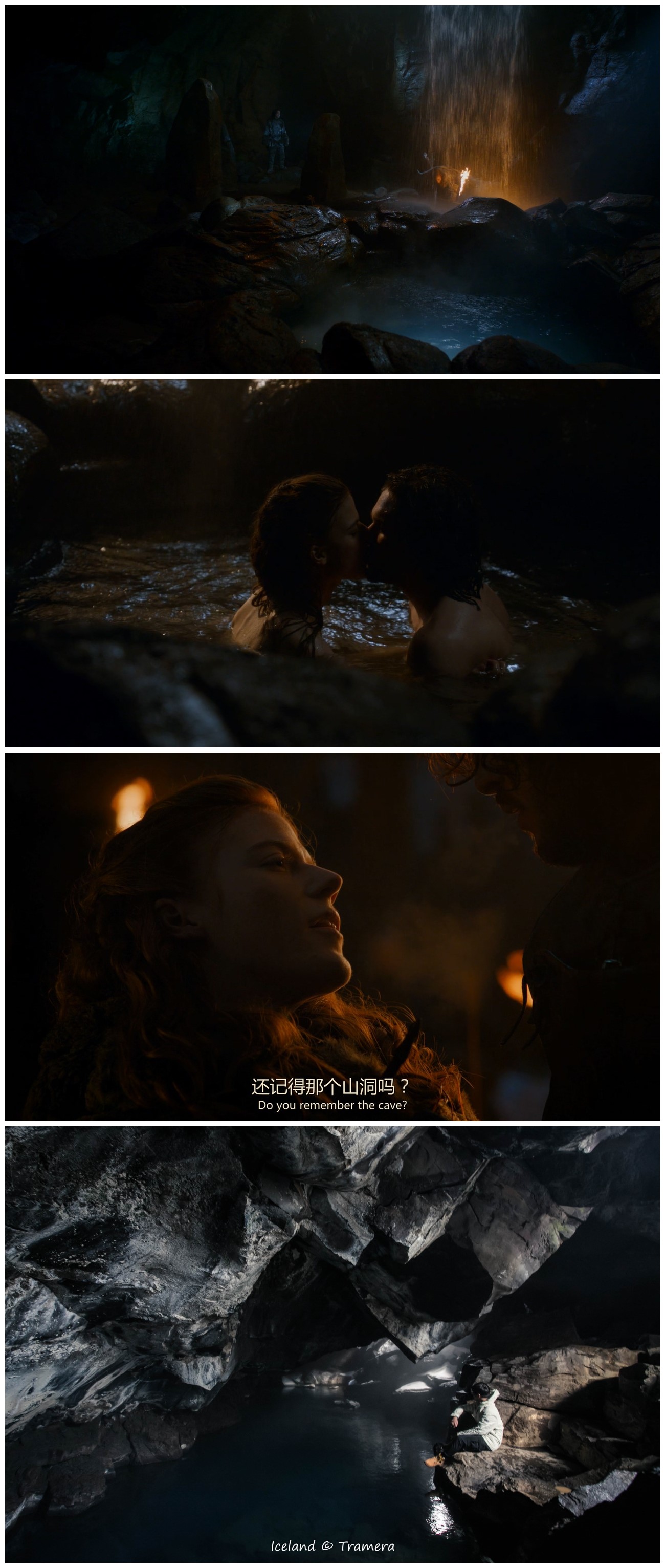 在剧中,Grjótagjá是雪诺与Ygritte的“爱巢”,鸳鸯戏水、感情升温的戏码全都发生在这里,雪诺就在这里失去了童贞……