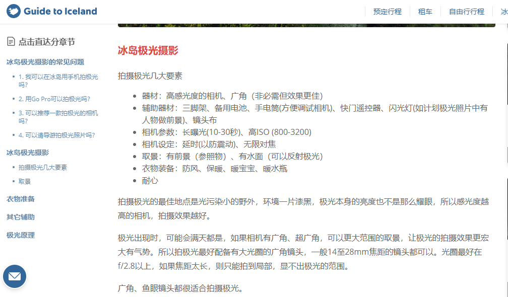 言归正传,极光的预报是从页面左侧选择aurora,就可以查看当天和未来2天的极光预报,极光指数由0-9,代表极光的不同强度,1-2级属于偏低(low activity),基本上很难看到极光;3级属于适中(Moderate),比较常见;4-5级活跃(Active),已经算常见的里面等级比较高的了;6-7级非常活跃(Highly Active),基本上比较难遇到了,如果旅途中能遇到已经算非常幸运了;8-9级就极为少见了,我在出行前一段时间和旅途当中,每天都有查预报,没有看到过,所以也不知道英文是怎么形容的 哈哈。