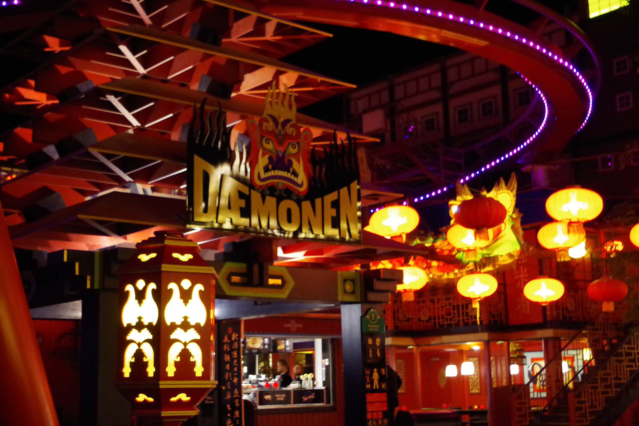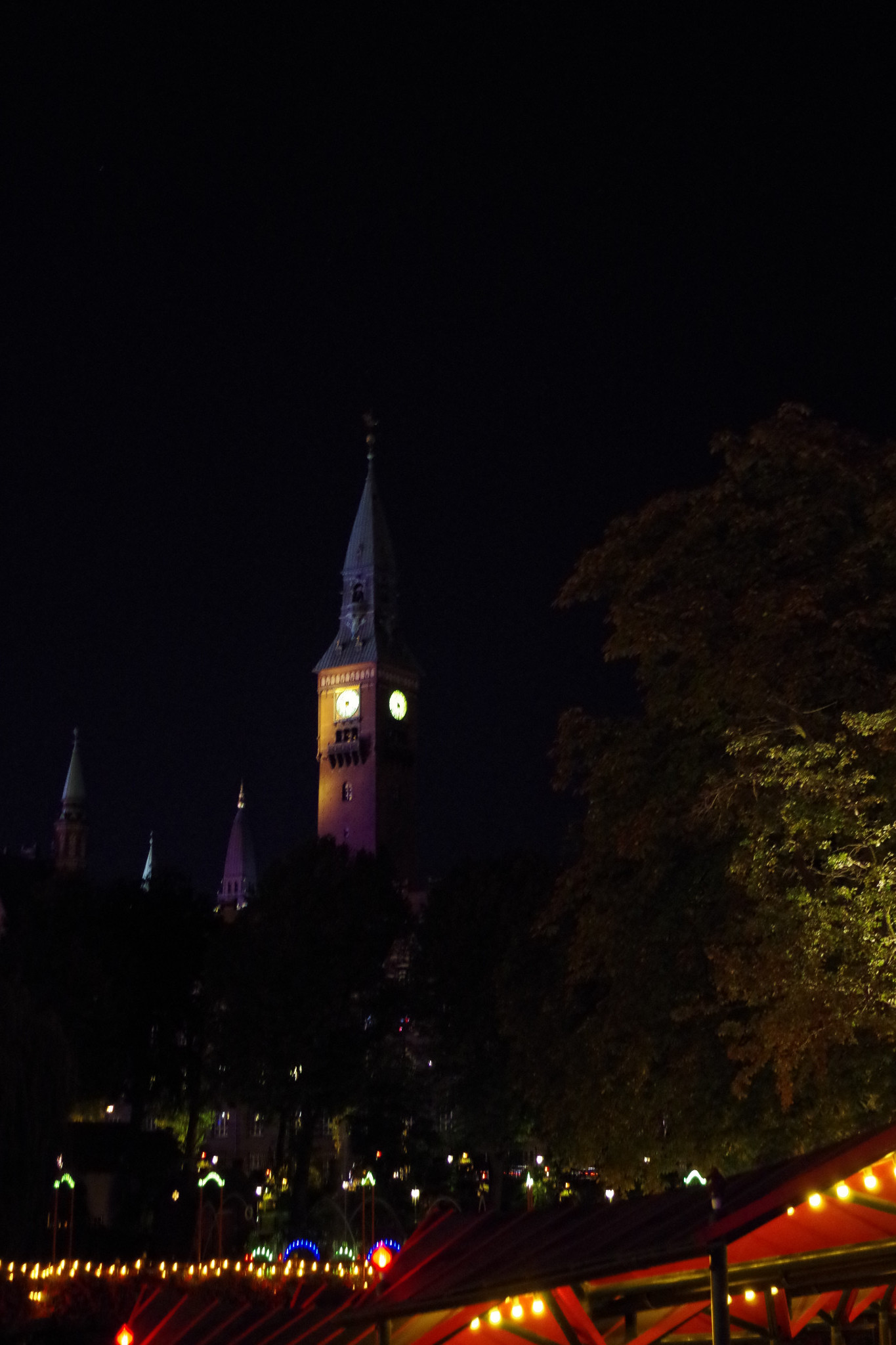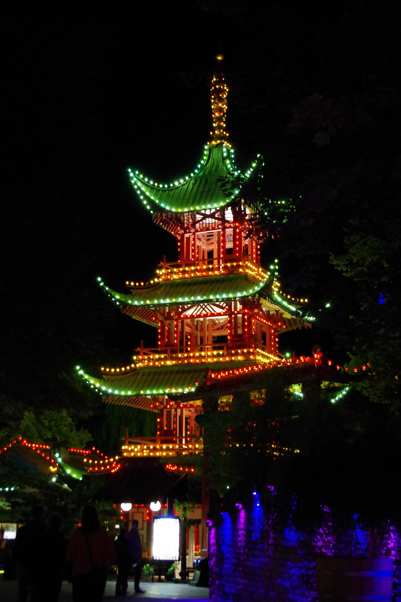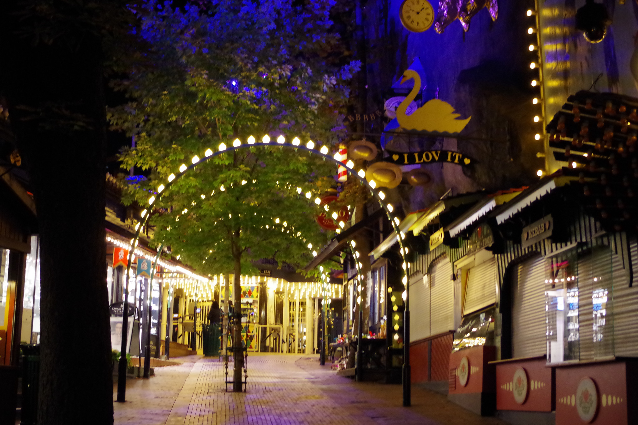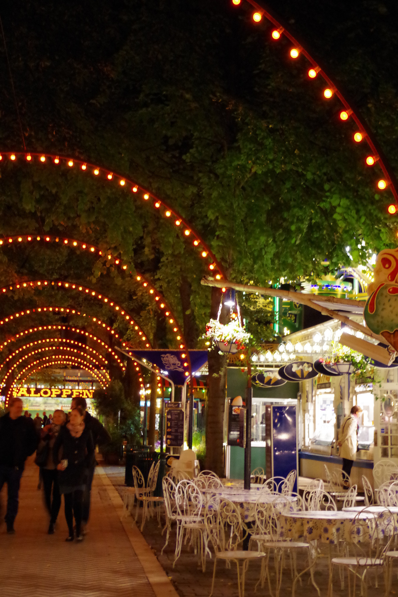 街对面就是Tivoli游乐园 灯火辉煌的园内街道 衬着深蓝色的天空