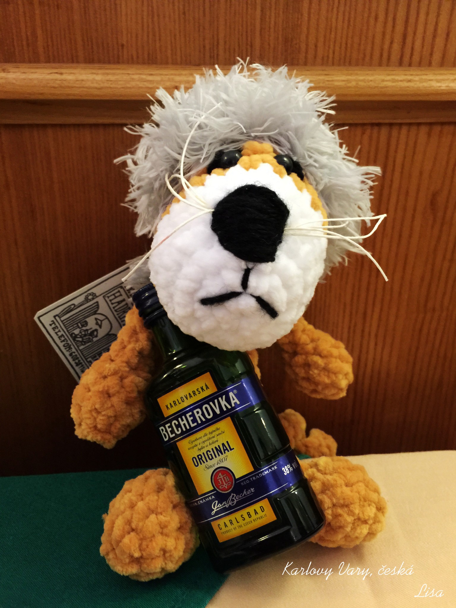我说的是狮子哈,那瓶酒就是温泉酒啦。河边有卖手工艺品的人,卖狮子的人很会做生意,拿了一大一小给我看,说一个是妈妈一个是儿子,但是我依然残忍的只买走儿子。哈哈哈。还有其他造型的,朋友 买了几只不同颜色的熊,老板说都是她自己亲手做的,很特别。