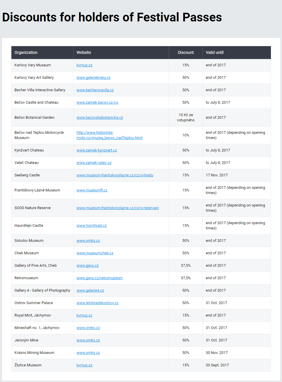 可以,每年在6-7月之间举行。可参看 卡罗维发利国际电影节 官网 http://www.kviff.com/en/homepage今年是52nd Karlovy Vary International Film Festival,日期为June 30 - July 8,2017,已经结束。官网有...显示全部