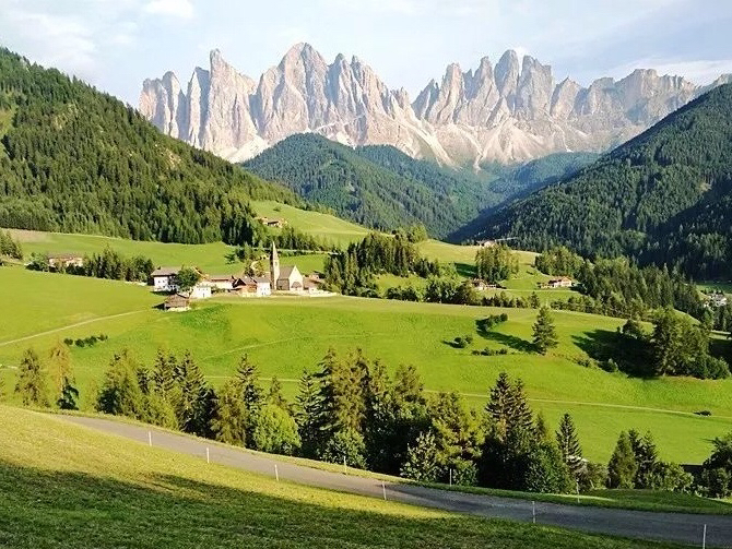 1⃣️首先抓紧时间去多洛米蒂,那里将举办冬奥会,剩下的空间不多了,部分路段已经开始汽车限行。这是一片阿尔卑斯山脉落在意大利的后花园,呈灰白色锯齿状的独特群山。团队常规旅游可能会去富纳斯山谷,圣乔瓦尼小教堂坐落在天鹅绒毯般的绿草坪上,背景是大片的落叶松和盖斯勒群峰,各大风光旅游杂志的热门。但实际上至少需要一周时间去"发现多洛米蒂"。