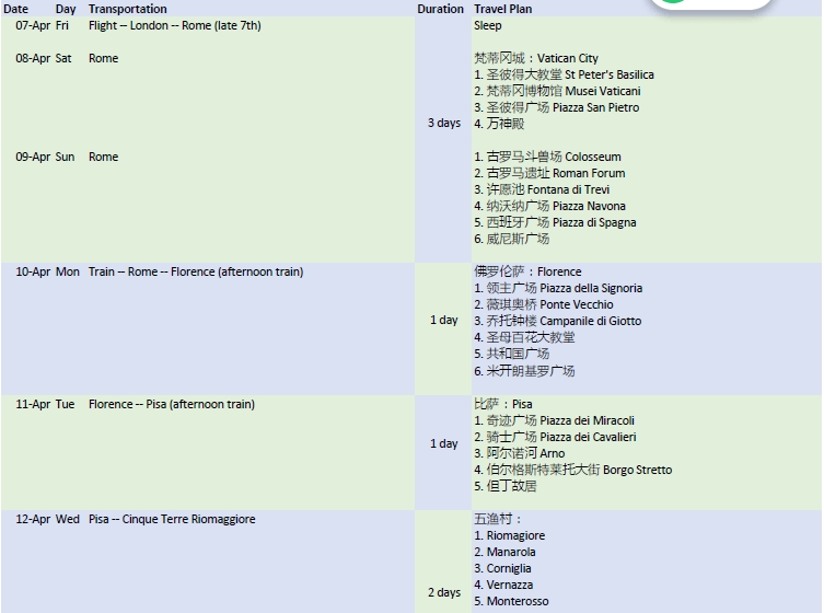 @Grant1990:答主您好!我准备明年一月底去意大利玩,大约有13天的行程,罗马进罗马出,依照这个时节的天气,您认为去哪几个地方比好合适?