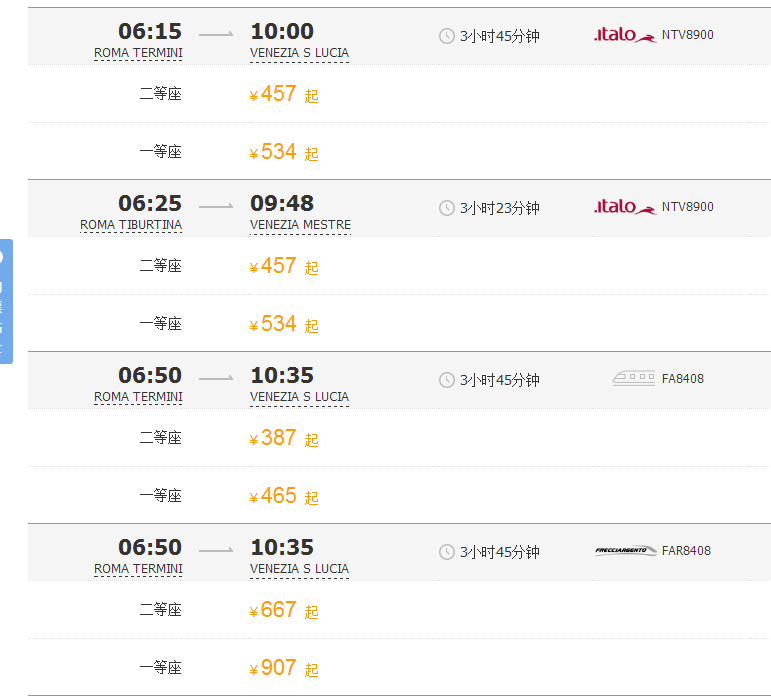 火车,可以在携程旅行网上看,或者是这个http://www.trenitatlia.com/就是意大利铁路官网也可以自己去火车站看========== 如果你觉得TA的回答不错,快来给TA点个赞吧! 你的支持是对作者莫大的鼓励~显示全部