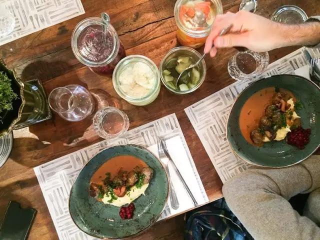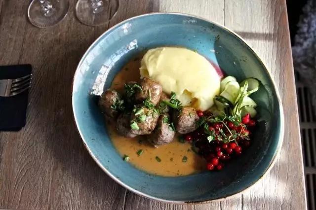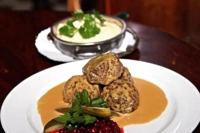 作为一家专注做肉丸的餐厅,这里的肉丸种类数不胜数,小牛肉、猪肉、牛肉、麋鹿肉、鹿肉、野猪肉甚至熊肉都可以做成肉丸。肉丸的口感取决于你的选择,入口即化、多汁浓郁或细密筋道。通常的肉丸是多汁的猪肉和牛肉搭配在一起,制成6-8个丸子,搭配土豆泥、越橘酱和腌黄瓜。