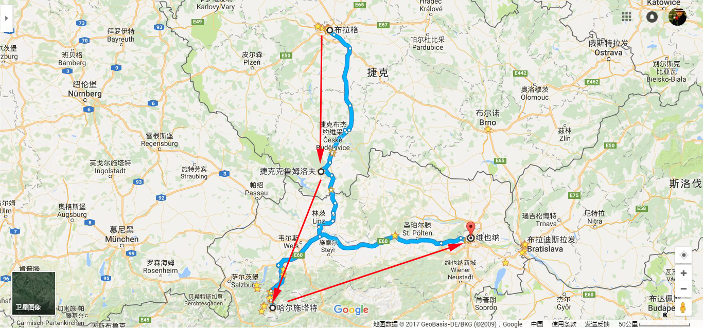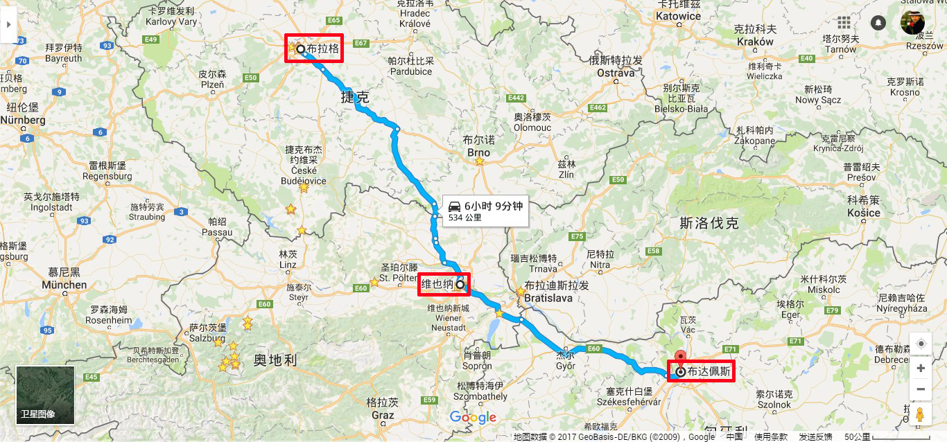 你好,不好意思,答复晚了,这几天网站搞活动,一下回答了很多问题。关于你提的问题,我不说值不值得,因为这个实在太主观了,还是先看看地理位置吧。从下面地图上可以看出,从布拉格出发,去到布达佩斯比去到维也纳差不多要远上1倍的距离。不知你是自驾还是公共交通,看你的描述好像只有三天的时间。如果是我的话,...显示全部