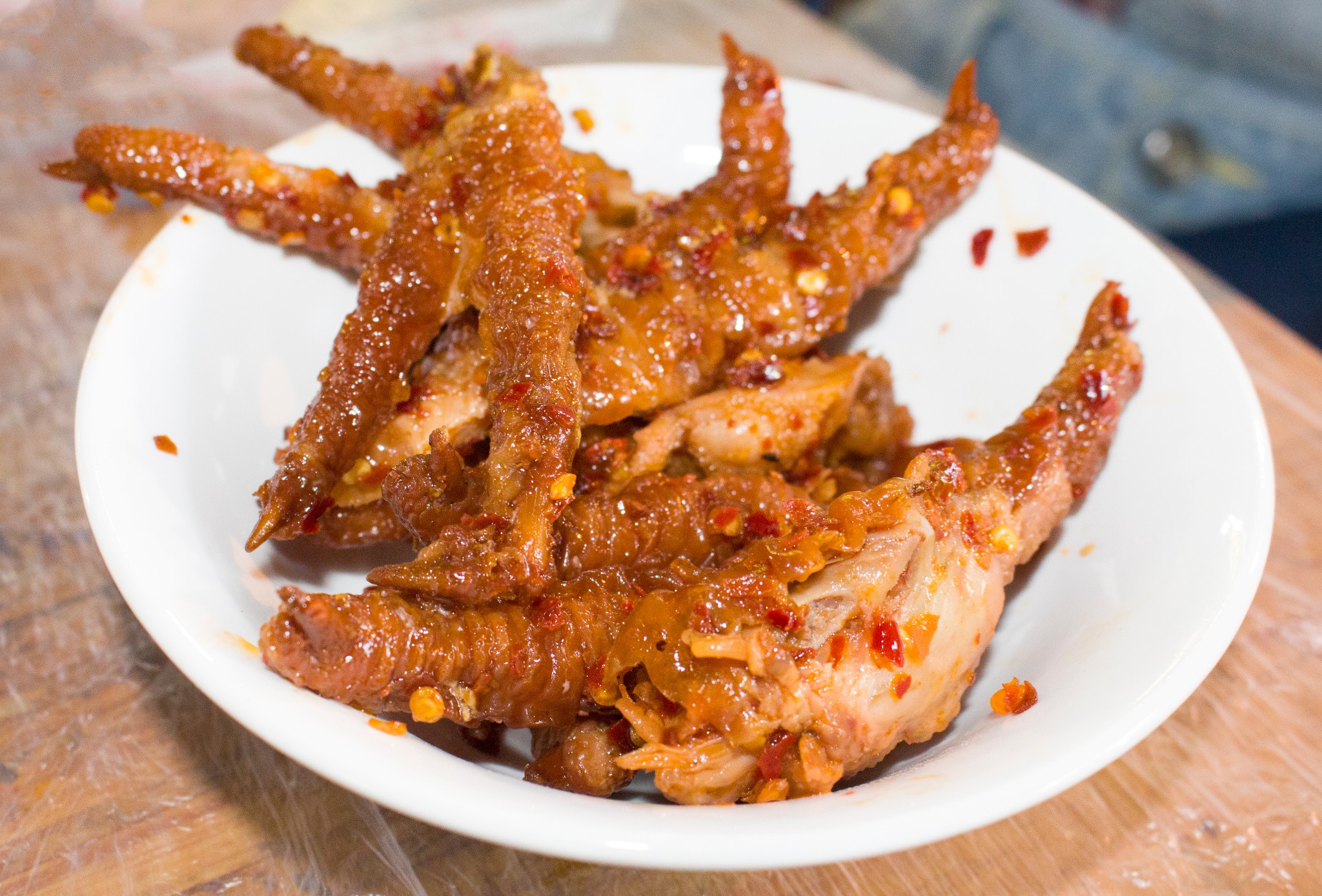 这个是鸡爪,脱骨的,入口即化,就是有点辣,不过我也还能接受,ok的~