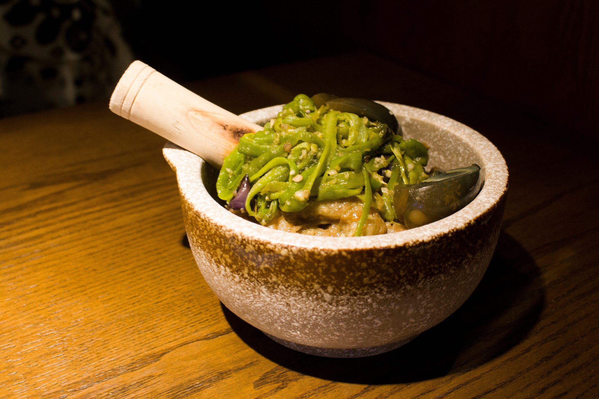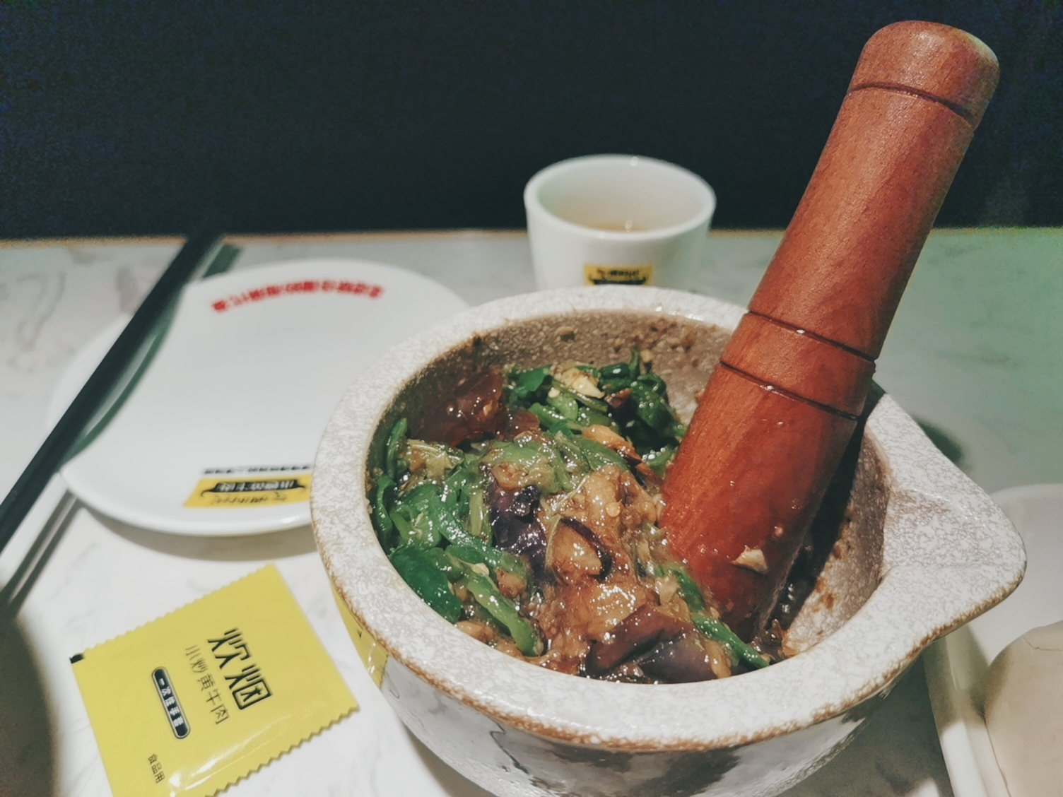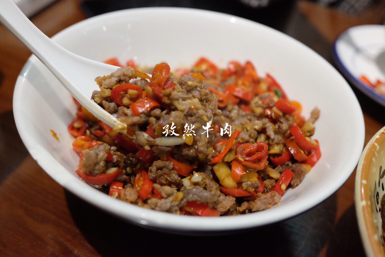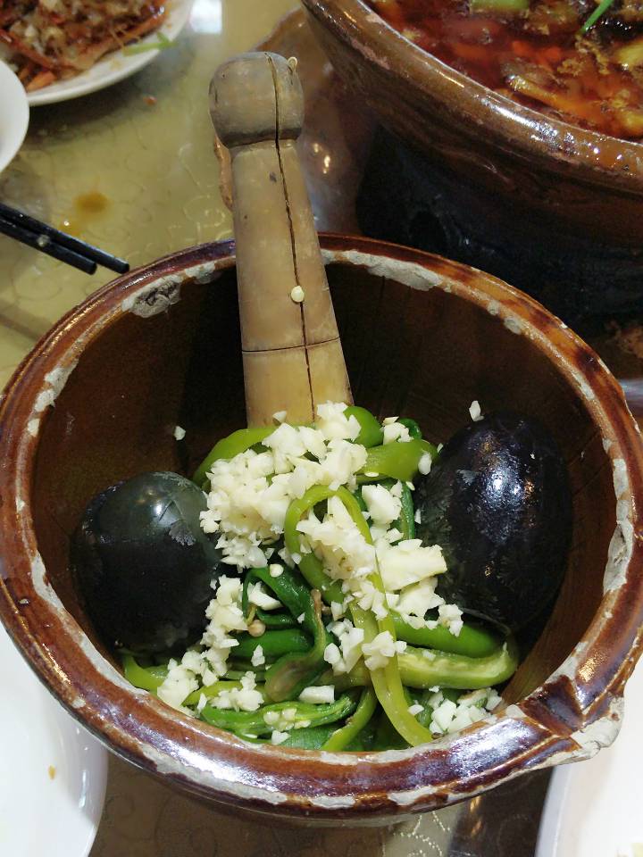 最推荐的是他们家的擂皮蛋辣椒茄子!好吃无比啊!之前在鱼嘴巴吃就觉得很好吃了,皮蛋还能这样吃,真是自己孤陋寡闻了。这家加入茄子简直就是点睛之笔啊,这么一大份才18元,值了!喜欢吃茄子的男朋友简直爱死这道菜了,长茄子本身的涩味已经没有了,只剩下油香和蒜蓉的味道,皮蛋擂碎了裹在茄子和辣椒上,四个字:人间美味!!!推荐指数五颗星