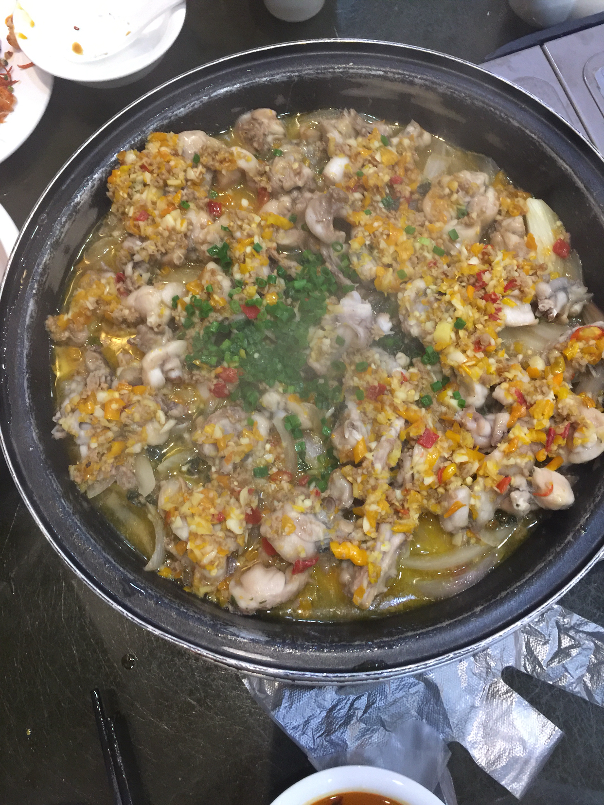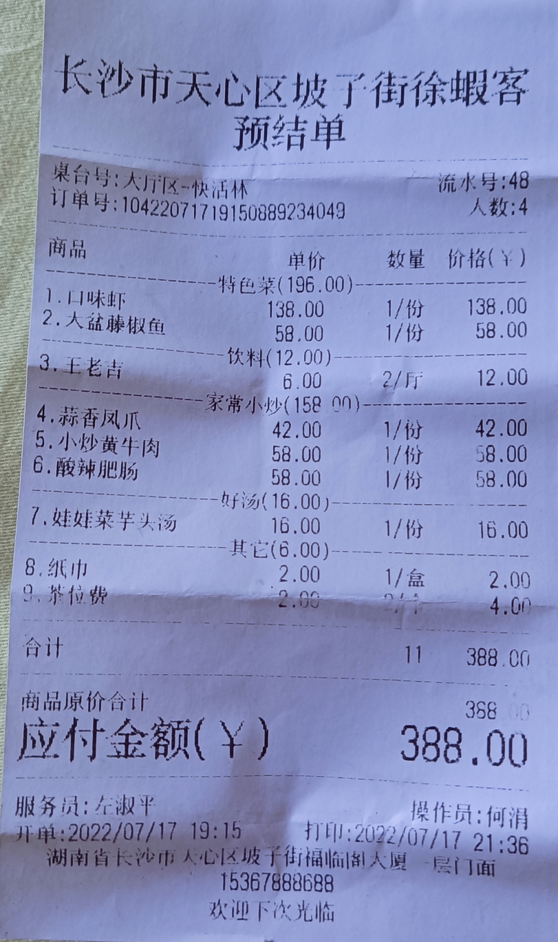 口味虾是最推荐的了!简直就是重口味爱好者的福音啊,够辣,够香,够入味!关键是入味,虾也是经过处理的,食材干净没的说,放心大胆的嗦吧~不过不知道为什么口味虾是装在袋子里上桌的,118一份,推荐指数五颗星。(男朋友居然没有给口味虾拍照!居然忘记拍照了,可能吃的太投入了吧23333)