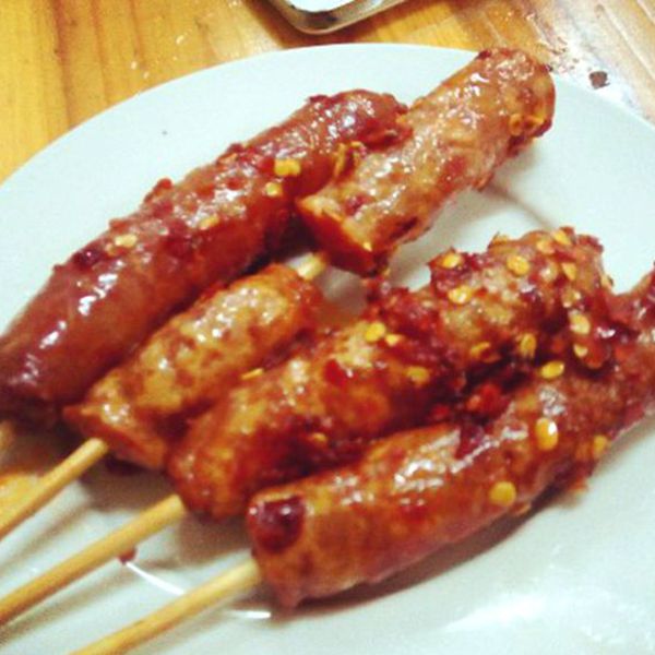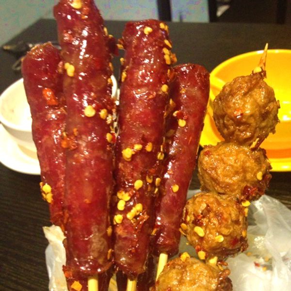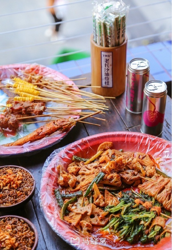 铁竹堂烧烤炸货(五一店) 这家有烧烤有炸串,味道无功无过。小碗里是
