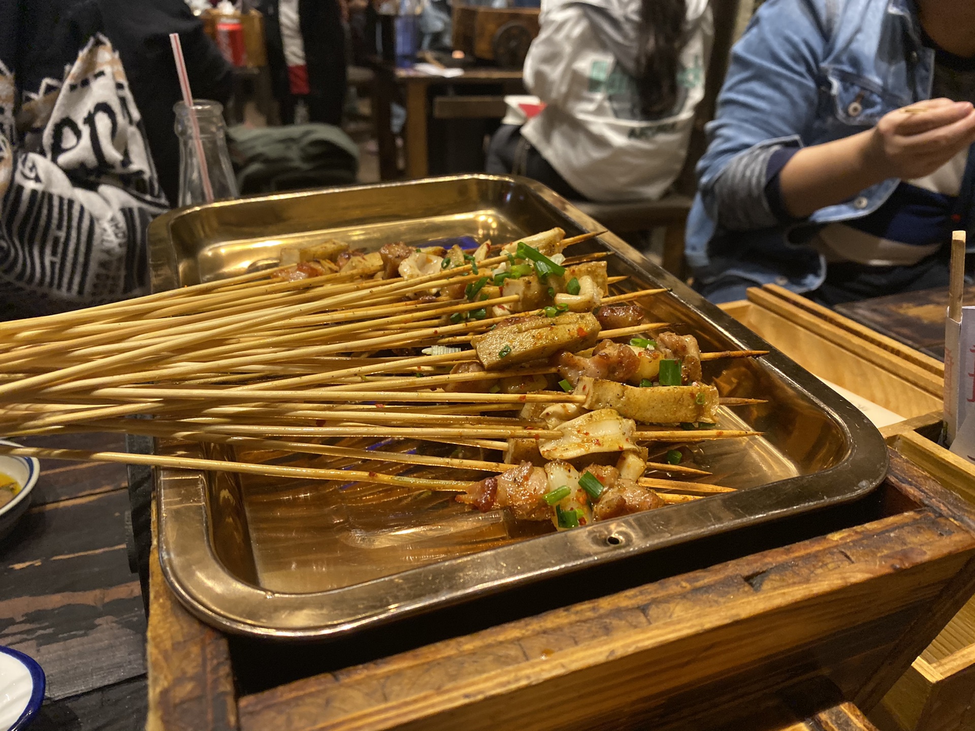 盟重烧烤(高正街店),排队了大概40分钟,不过真的很好吃。沉迷于烈火牛肉、蒜爆鸡。
