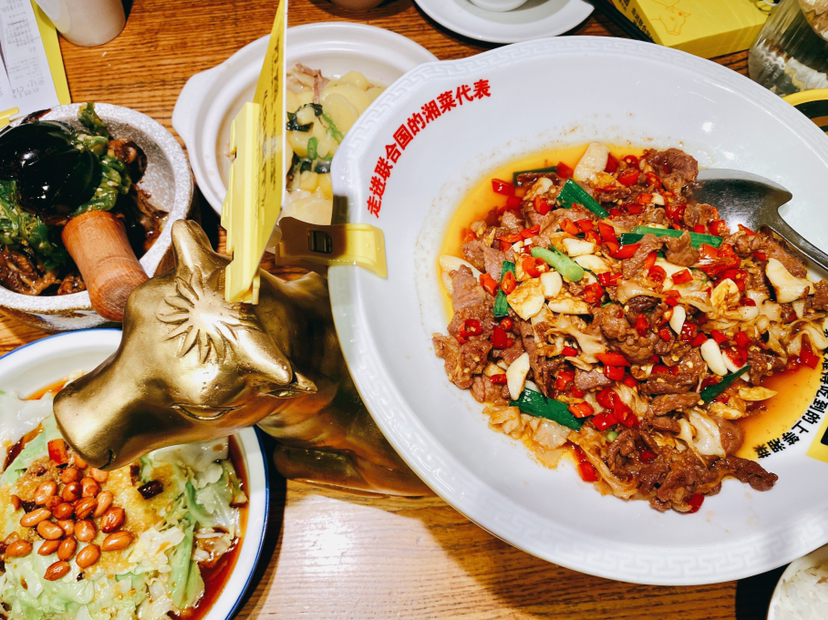 遍地这家广告,上过联合国的小炒黄牛肉,也在《向往的生活里出现过》。推荐招牌小炒黄牛肉,皮蛋辣椒擂茄子,酸萝卜条,杂粮红薯饭。