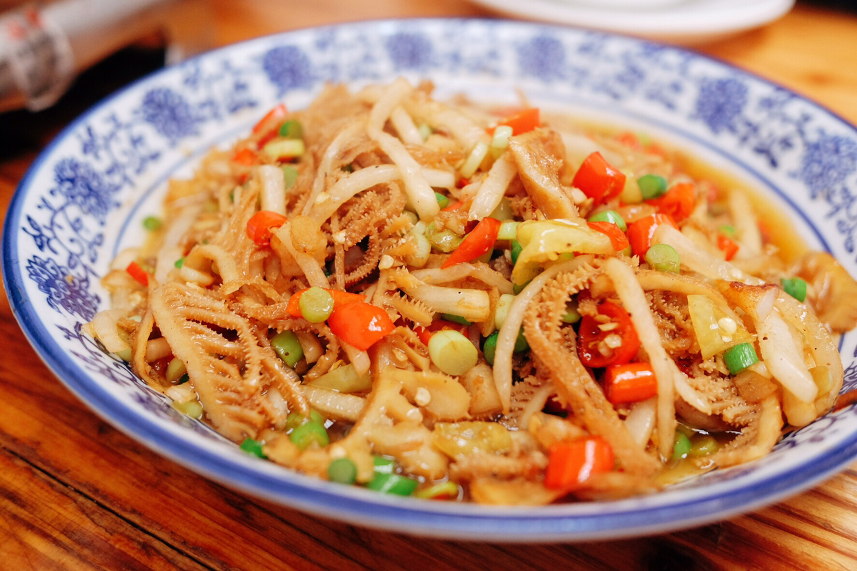 辣炒藕尖是一道神奇的开胃菜,酸酸辣辣的,特别清爽。最重要的是我之前没有吃过藕尖这种食材,咬下去的脆度介于藕片和蔬菜茎部,比藕片嫩一点点。推荐指数四颗星