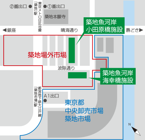 内市场搬去了台场的丰州市场,坐百合海鸥号在丰州站下即到,几家原先位于内市场的老店和金枪鱼拍卖一起搬了过去。外市场还保留在筑地,原先的美食店都还在,一样很有氛围,很值得去品尝美食。