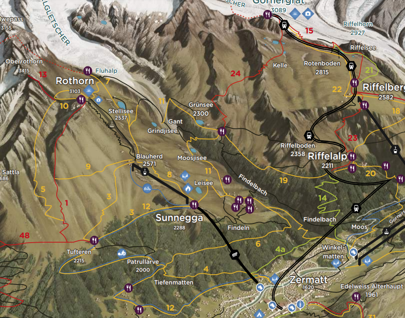 1,只有一天时间,想去五湖徒步,还有riffesee看马特洪峰倒影,第二天10点就要退房,路线要怎么走合适?有直接从gornergrat到sunnegaa的路线么?还是一定要下到采尔马特才能再上sunnegaa去五湖徒步?1)到的当天去五湖徒步,第二天去是不现实的,五湖徒步光走那...