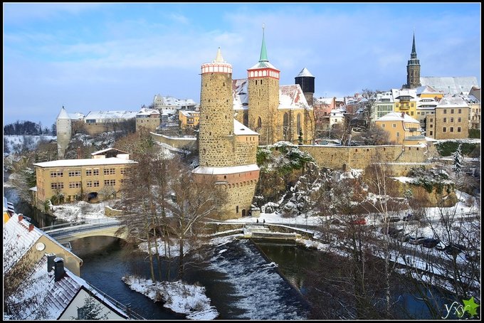 {!!!本文版权归 亦闲园 所有,任何形式转载请注明作者“亦闲园”与出处!!!} Bautzen位于德国东部的萨克森州境内, 从州府德累斯顿出发可以乘坐火车轻松抵达. 这里是德国唯一的少数民族索布人的文化中心. 小城坐拥山岗, 下绕溪流, 高墙巍峨,塔楼林立, 风景别具一格. 而且这里远离热门的旅游线路, 游人稀少, 古朴而安静. 下面这张图中, 彩圈...